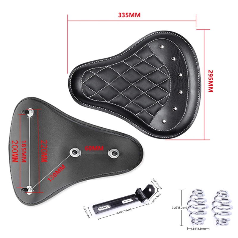 - > Novo assento solo de couro retrô para motocicleta + suporte de mola de 3 "compatível com chopper bobber personalizado para harley honda yamaha kawasaki
