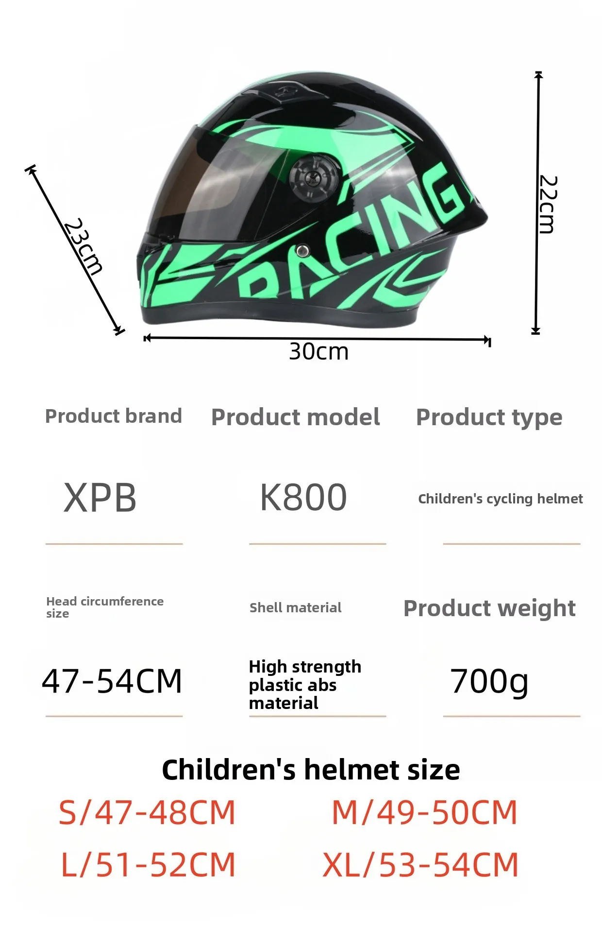 Capacete locomotiva infantil Capacete completo infantil, capacete Kart capacete 1-3 anos (com circunferência da cabeça tamanho S 47-48CM) 4-6 anos (com circunferência da cabeça tamanho M 49-50CM) 7-10 anos (com tamanho L circunferência da cabeça 51-52CM)