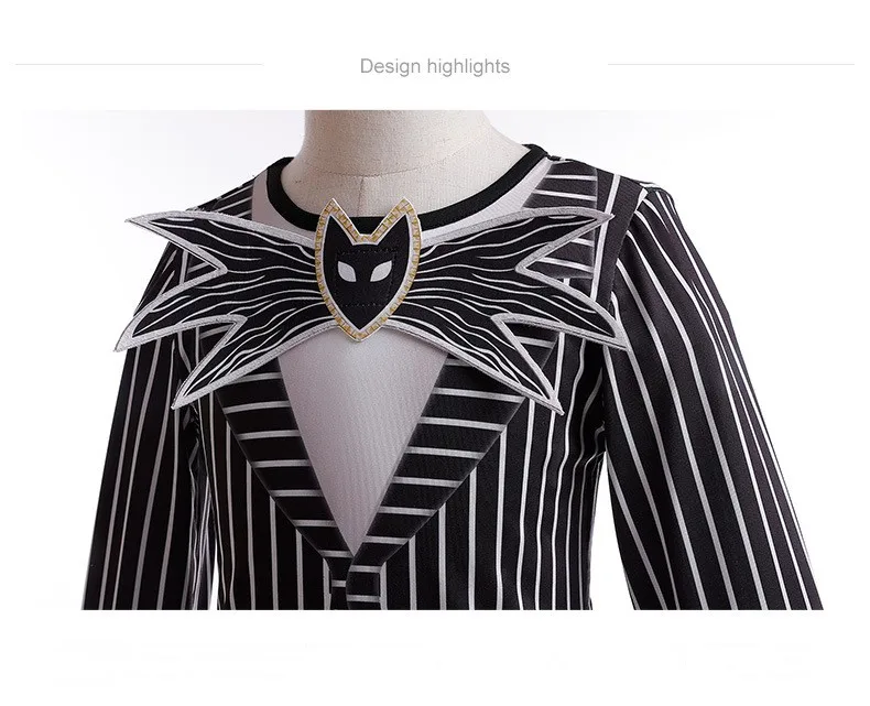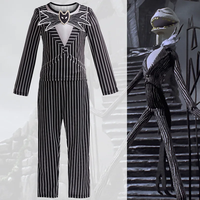 Novo desgaste véspera de natal assustador esqueleto jack cosplay meninos listrado duas peças personagem de halloween vestir-se traje 2-8y