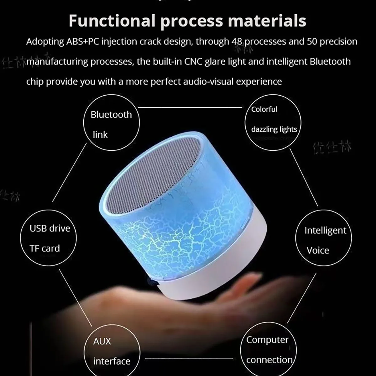 Novo Mini Áudio Do Carro Portátil A9 Dazzling Crack LED Sem Fio Bluetooth 4.1 Subwoofer Speaker TF Card