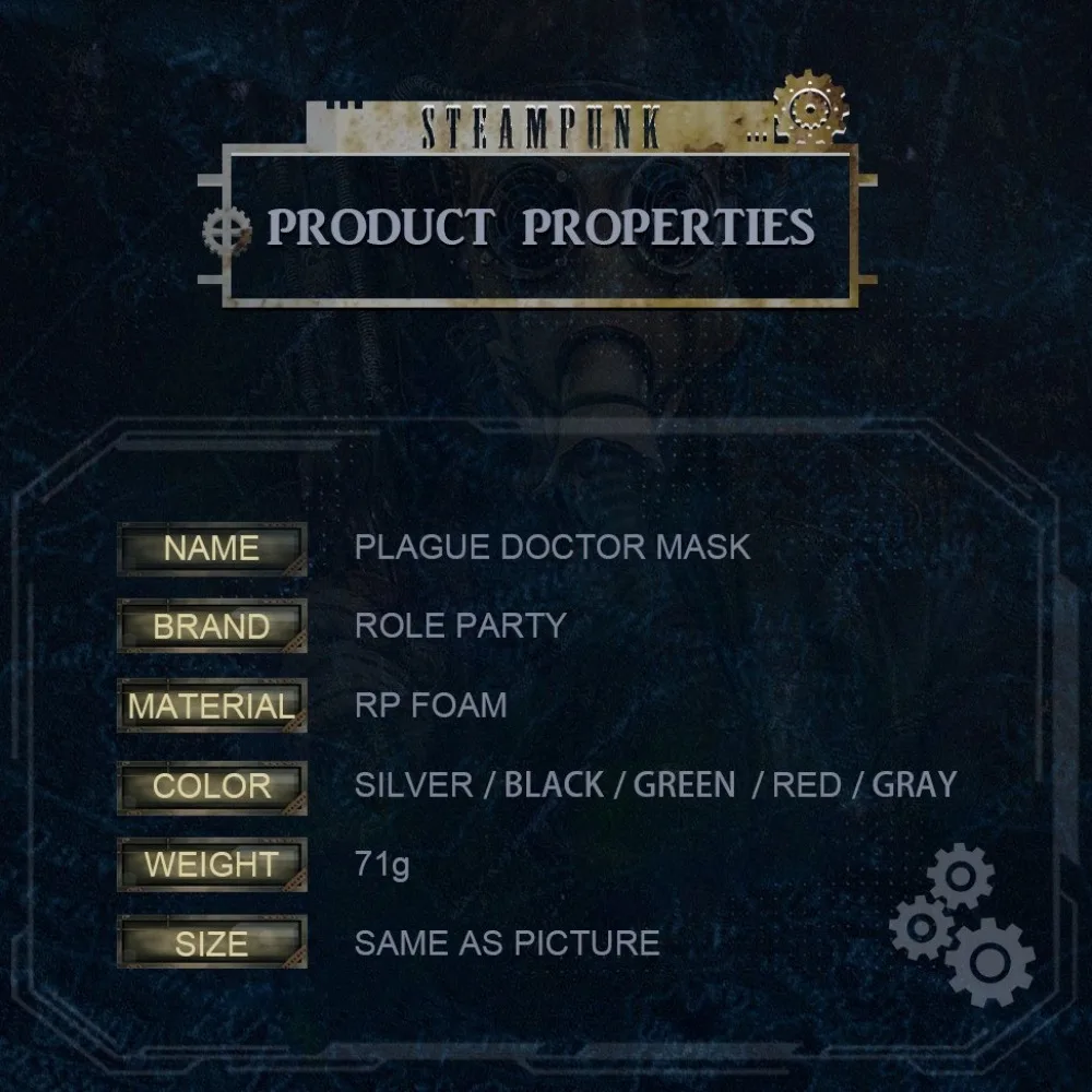 Adicione um toque de mistério a qualquer roupa com esta máscara exclusiva Steampunk Plague Doctor.O design intrincado e a cor prateada tornam-no um acessório de destaque.