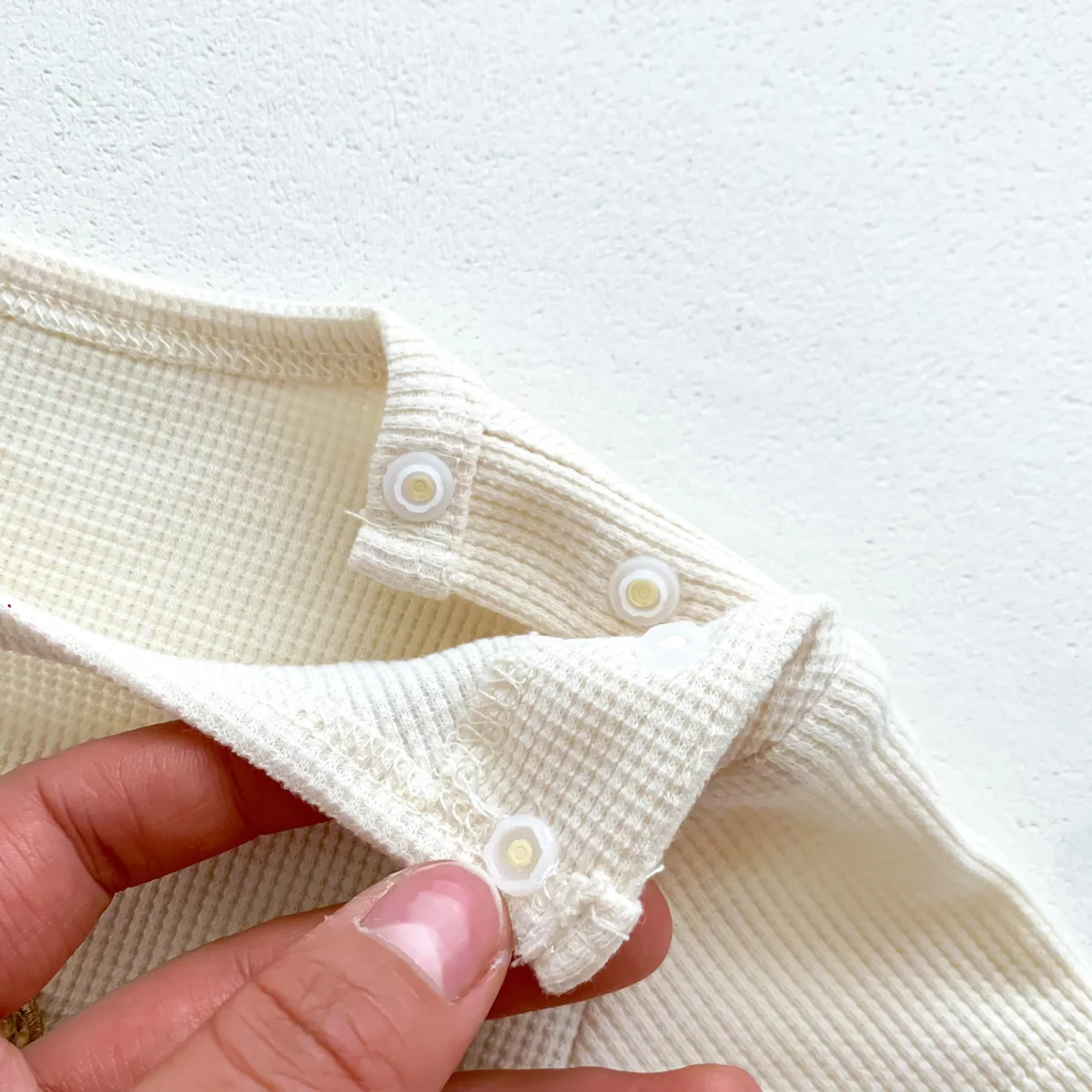 3.Fácil de usar com fechos de botão de pressão e design de manga curta - O macacão é projetado com fechos de botão de pressão que facilitam a retirada e a colocação.O design de manga curta permite que o ar circule e evita o superaquecimento do bebê.