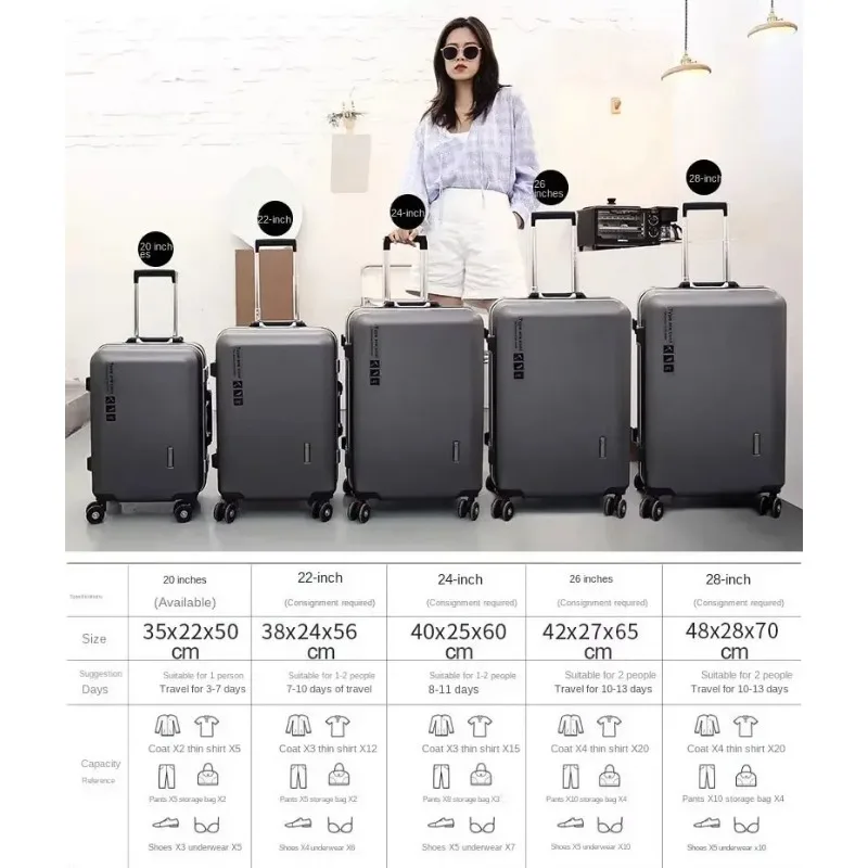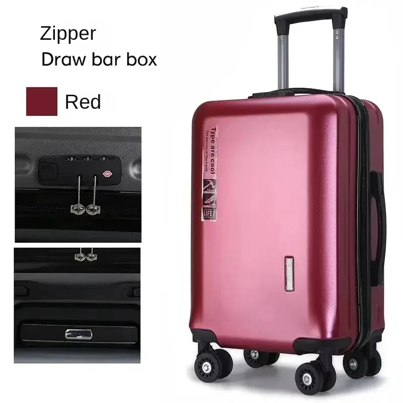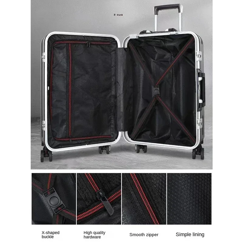 ?Novo quadro de alumínio + rodas para mala de PC com zíper para negócios Mala de cabine porta USB porta de bagagem de 26 polegadas Caso de carrinho