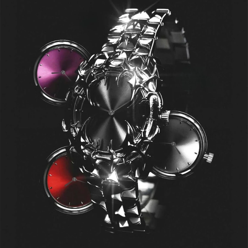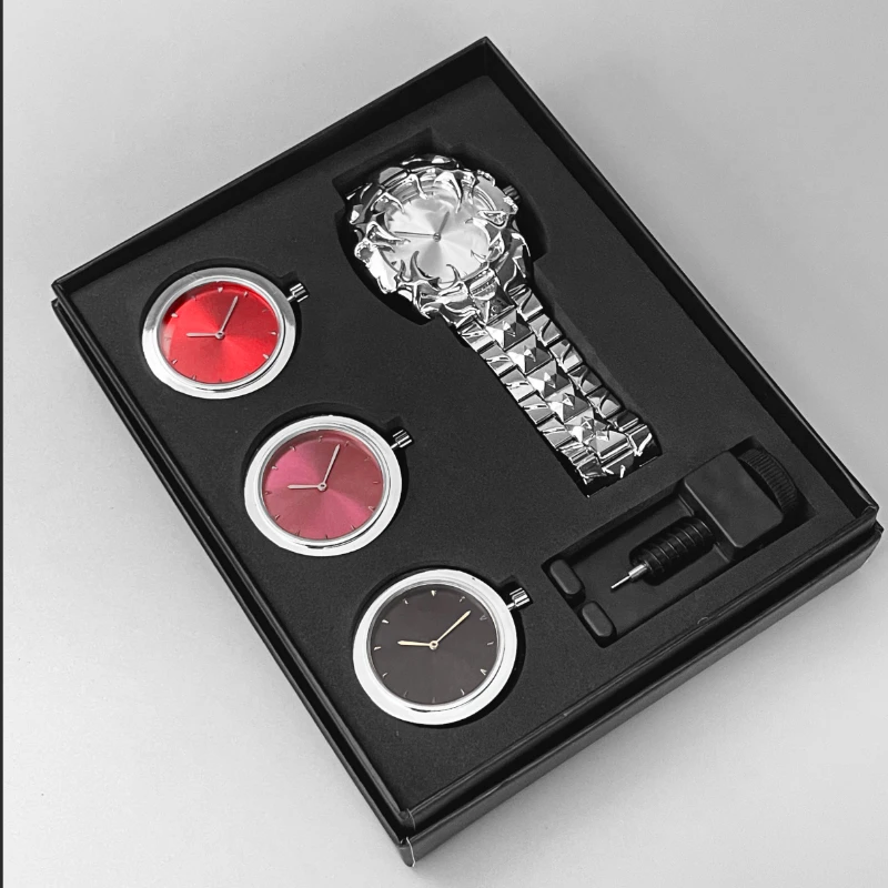 - > Novo relógio de quartzo masculino em forma de garra com mostradores intercambiáveis removíveis retro nicho relógio feminino estilo punk moda de rua