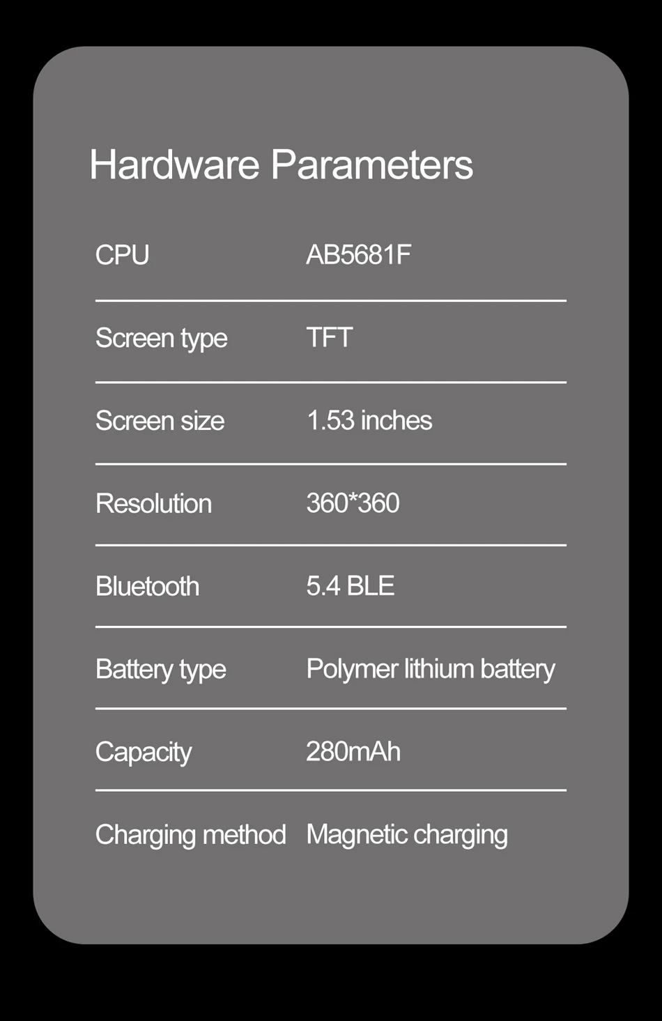 Funções básicas: Chamadas Bluetooth, lanterna de alto brilho, monitoramento de frequência cardíaca, exercícios respiratórios, saúde feminina (rastreamento de períodos), monitoramento do sono, lembretes sedentários, notificações de chamada, calendário, despertador, cronômetro, clima, controle de música, assistente de voz, cronômetro, calculadora, jogos, etc.