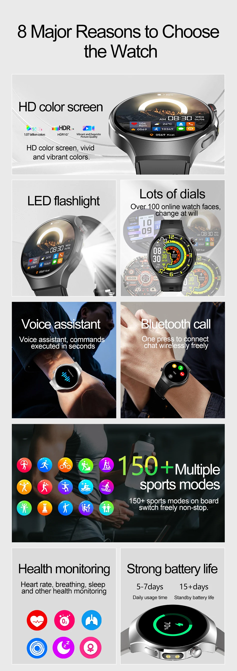 - > Novo relógio inteligente masculino tela de toque completa bússola bluetooth chamada lanterna esportes atividade fitness freqüência cardíaca à prova dwaterproof água smartwatch