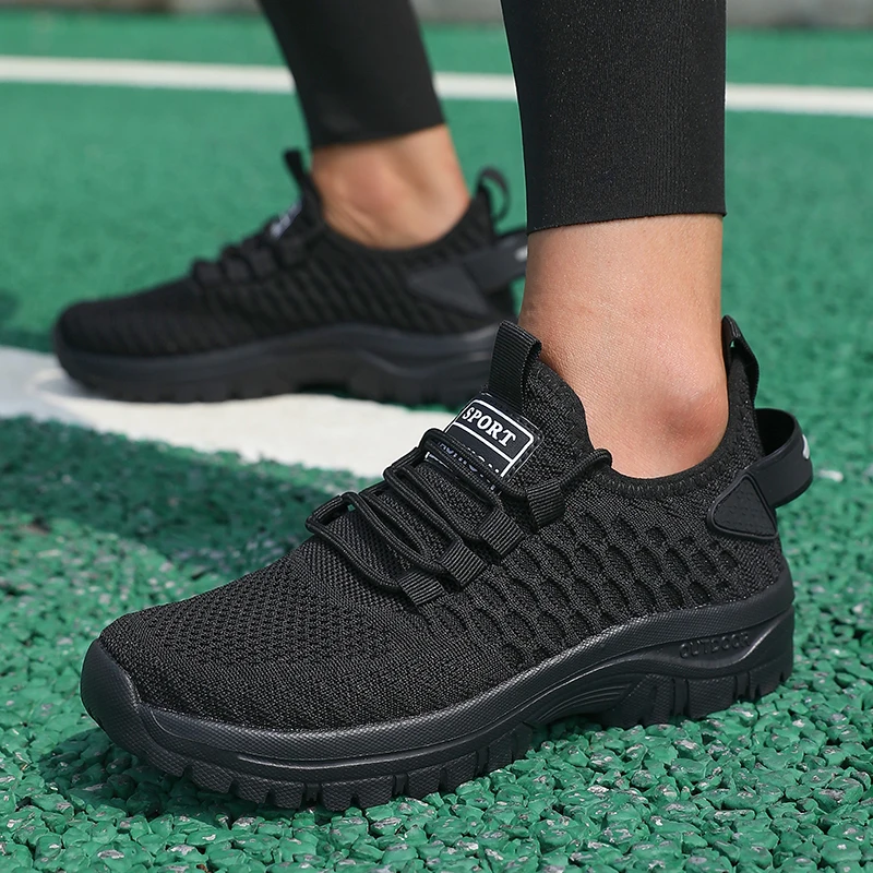 - > Novo tênis de corrida acolchoado feminino malha respirável sola macia tênis moda para a frente leve sapatos de exercício ao ar livre