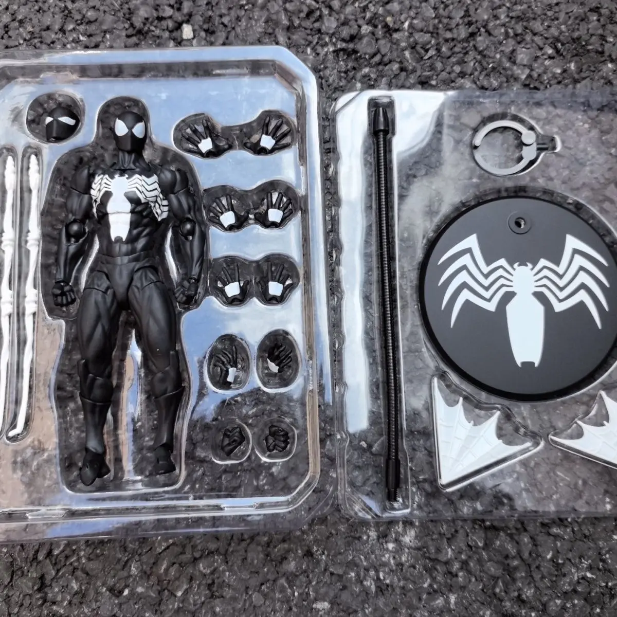 - > Novos brinquedos bagunça figura do homem-aranha terno preto vizinho simbionte messto brinquedos escarlate vizinho figura de ação ct brinquedos preto vermelho homem aranha
