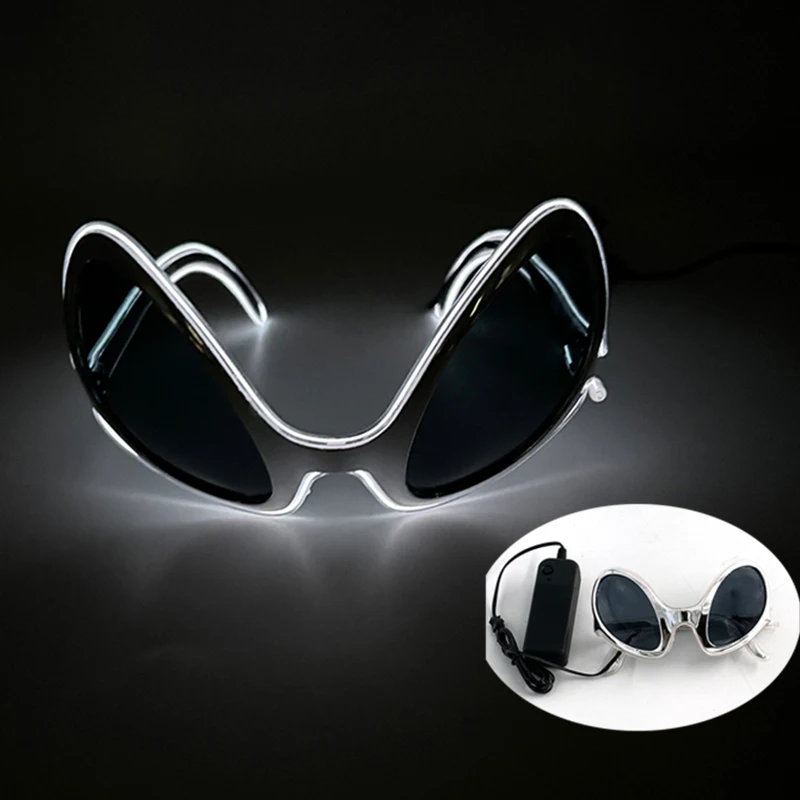 Novos óculos engraçados traje adereços alienígena óculos de sol para mulheres homens lente preta meninos meninas óculos iluminados para o dia das bruxas