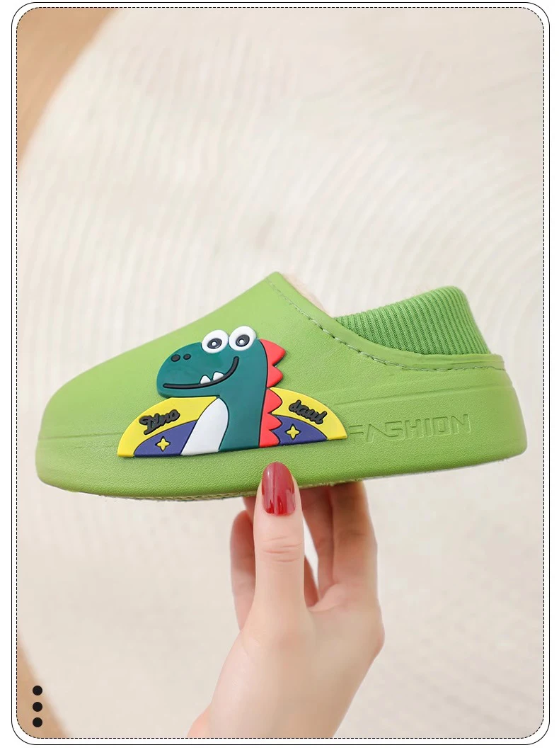 - > Novos sapatos infantis de algodão à prova d'água fofos para meninos e meninas outono e inverno dentro de casa com chinelos de algodão quente de pelúcia