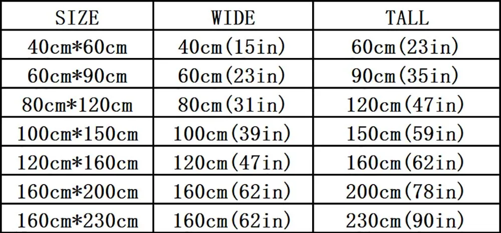 1200mm x 1600mm (47.2in x 63in)