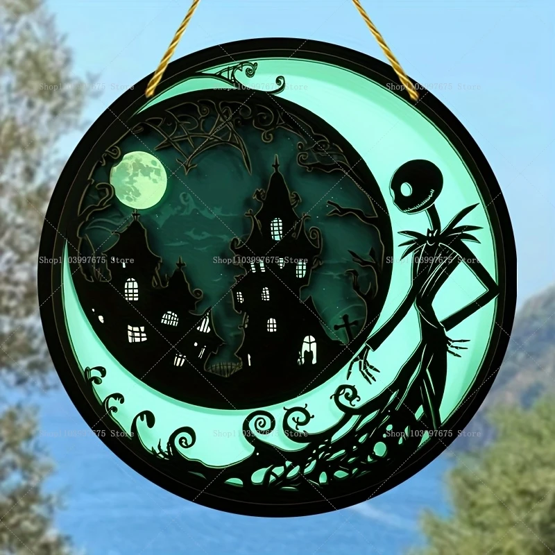 - > O pesadelo antes do natal jack skellington sun catcher 2d plana acrílico pendurado sinal para halloween casa jardim decoração da parede