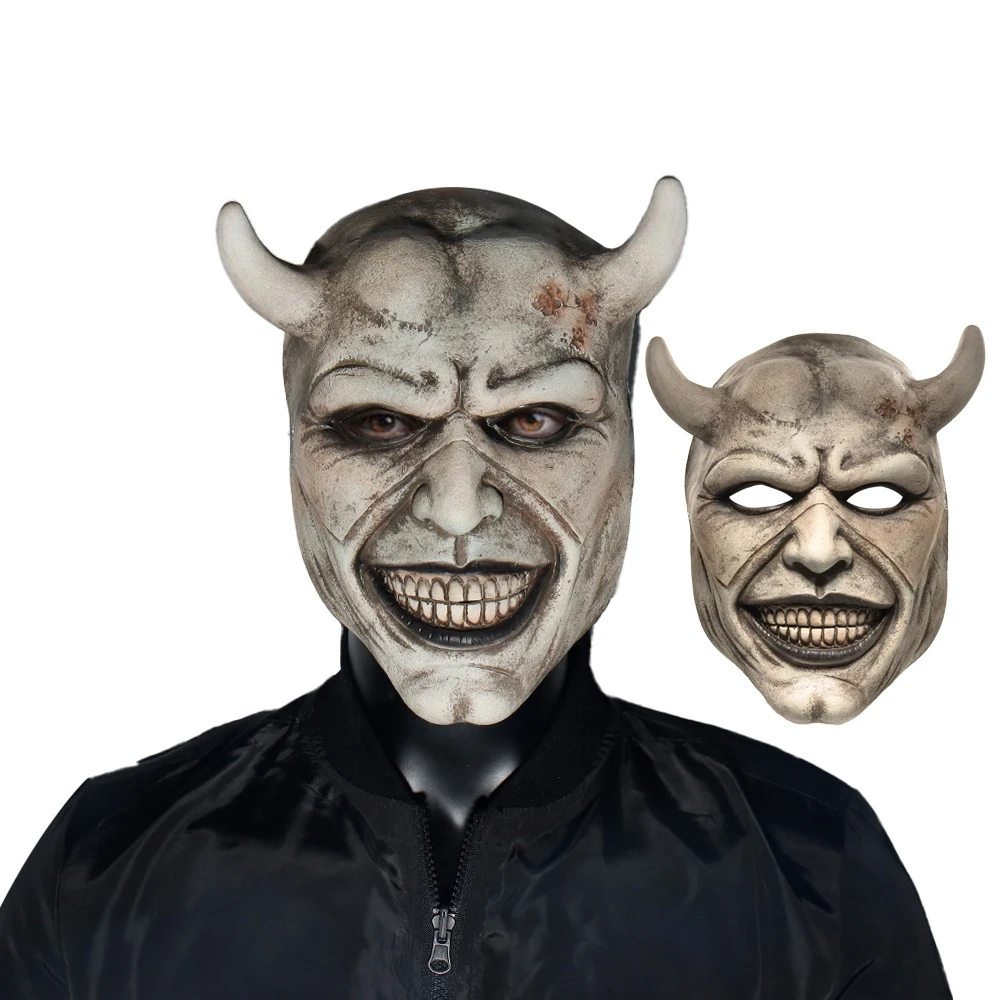 O telefone preto a máscara Grabber, capacete cosplay, adereços festa de carnaval Halloween, chifres