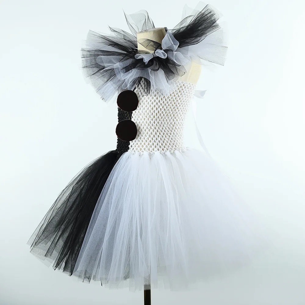 O traje de palhaço terrível arte menina preto branco fantasia tutu vestido horror coringa vestido para meninas trajes de festa de carnaval de halloween