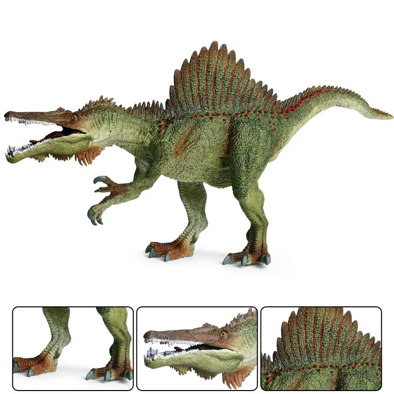 Descrição:Oenux novo jurássico dinossauro brinquedo espinossauro figuras de ação boca aberta tiranossauro animais modelo coleção criança brinquedo presente