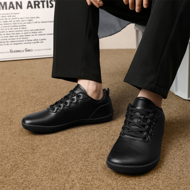 - > Oiaano unissex dedo do pé largo homem couro preto sapatos mulher descalço lazer tênis plataforma zero gota luz respirável trabalho