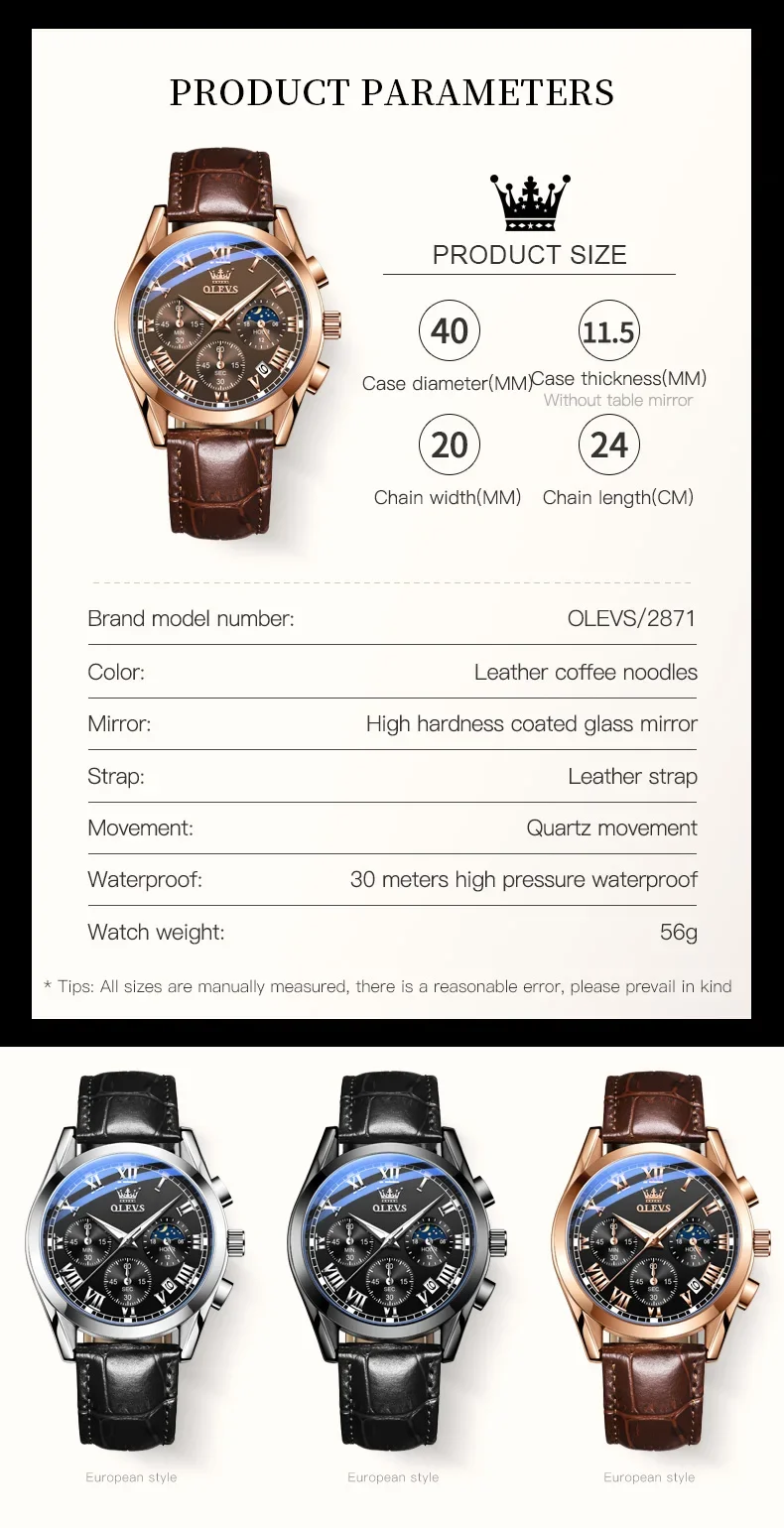 - > Olevs 2871 relógios masculinos multifuncionais de aço inoxidável luminoso à prova d'água relógio de pulso masculino de luxo relógio de negócios