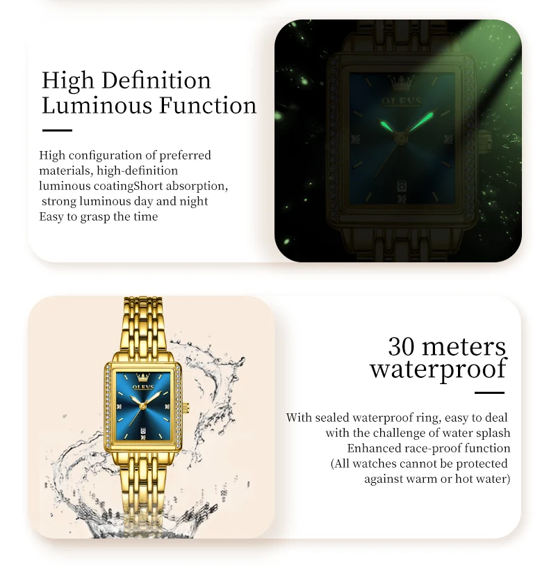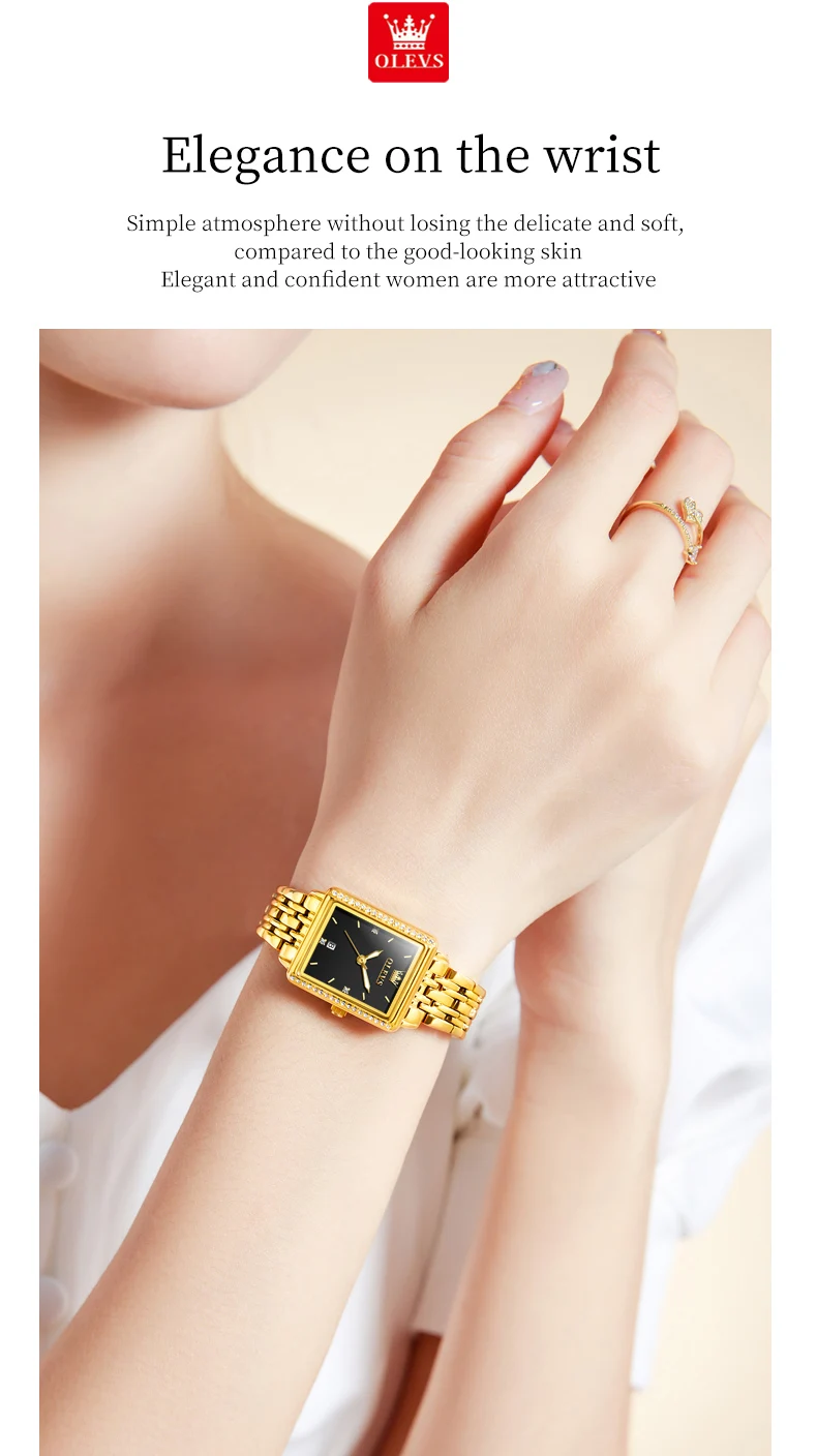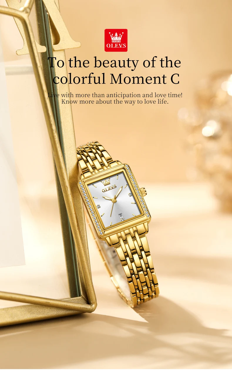 - > OLEVS-Relógio Quartzo de Diamante Impermeável em Aço Inoxidável Feminino, Elegante, Top Fashion, Negócios, Luxo, Original