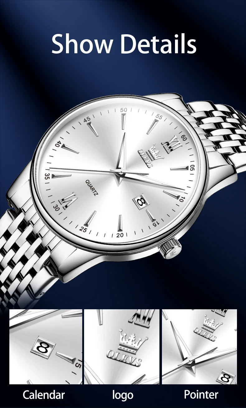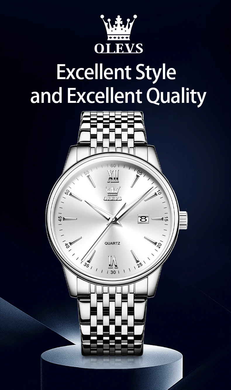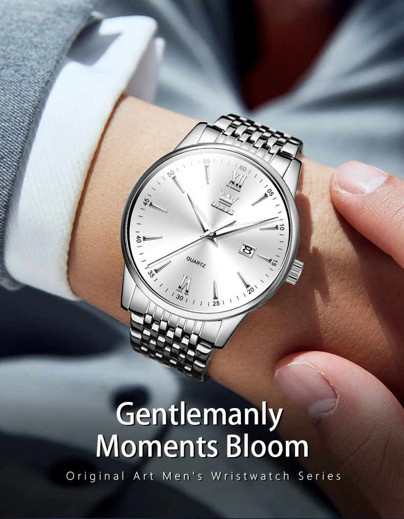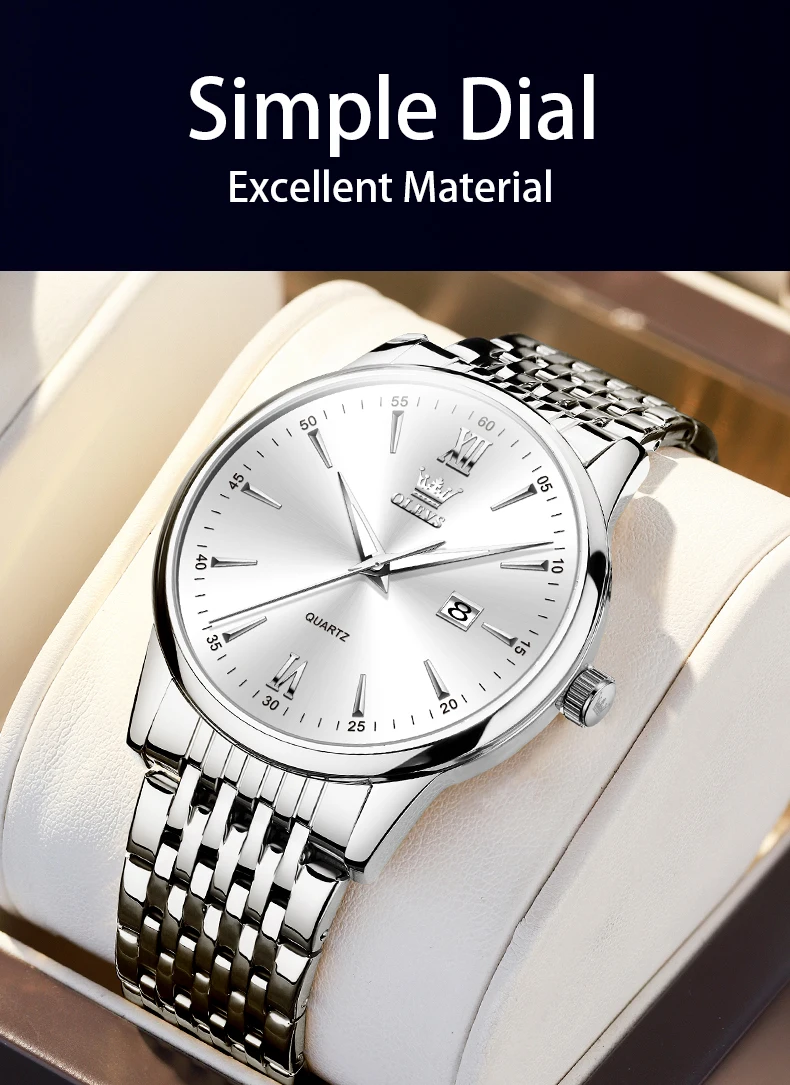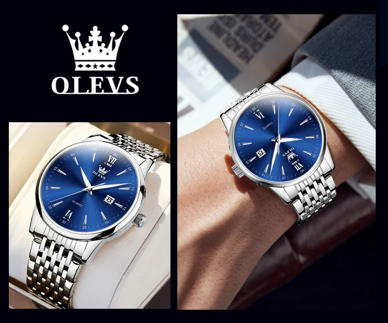 - > OLEVS-Relógios de luxo high-end para homens, relógios originais de aço inoxidável, marca top, relógio de quartzo, relógio manual, moda