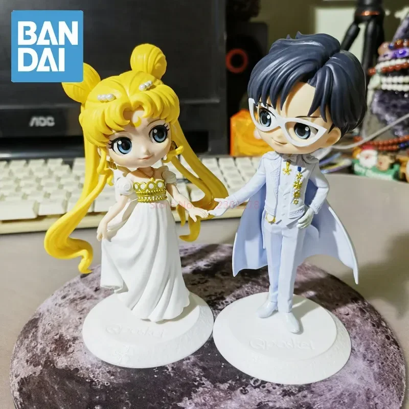 - > Original bandai qposket marinheiro lua tsukino usagi chiba mamoru figura de ação vestido de casamento ver estatueta estátua de pvc boneca brinquedos
