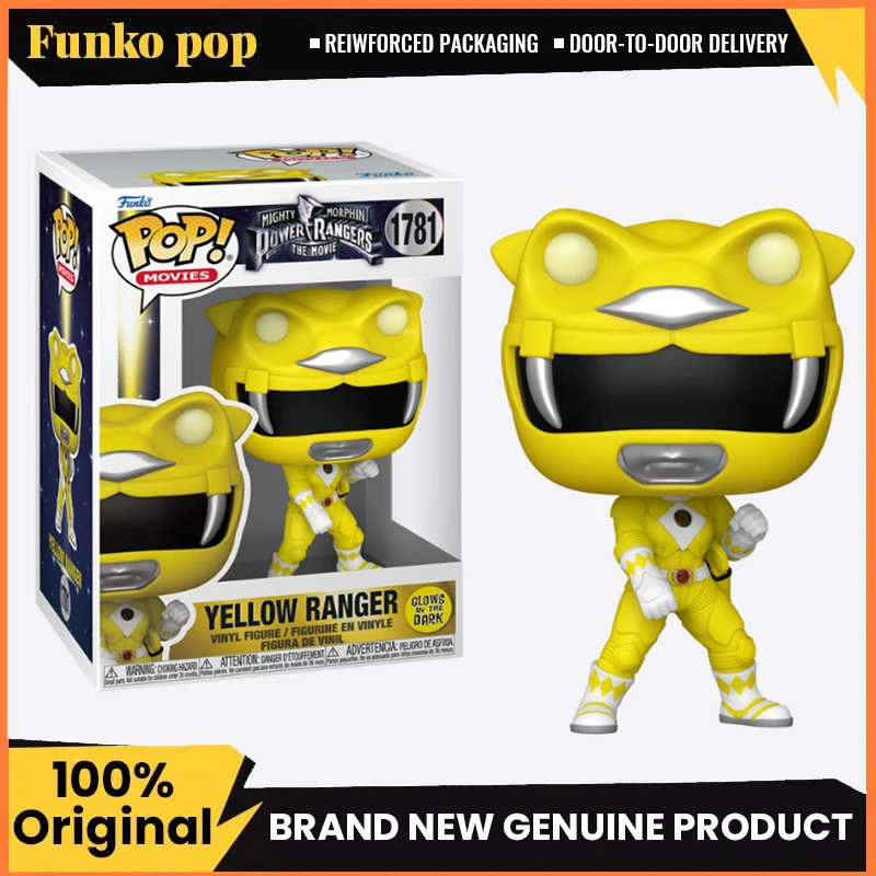 Original Funko Pop MMPR Movie 1781 Yellow Ranger Doll modelo colecionável é adequado para meninos e meninas como presente de aniversário