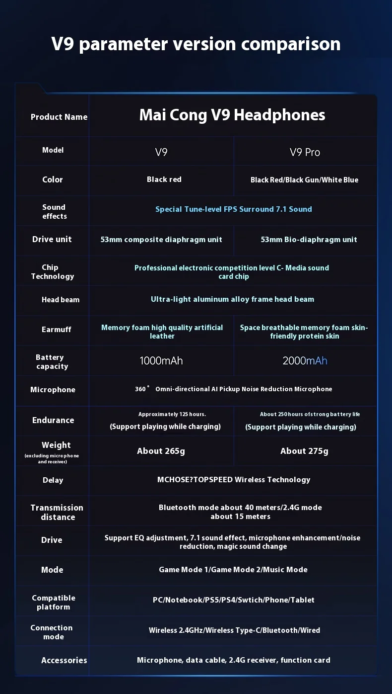 Original mchoose v9 pro personalizado gaming fone de ouvido tri-mode esports fones de ouvido hi-res música ativo redução de ruído fones de ouvido pc