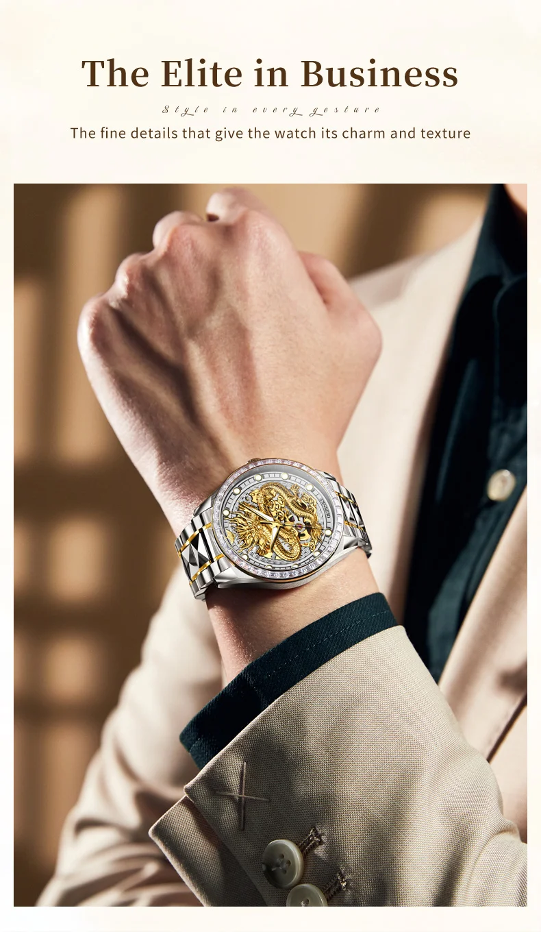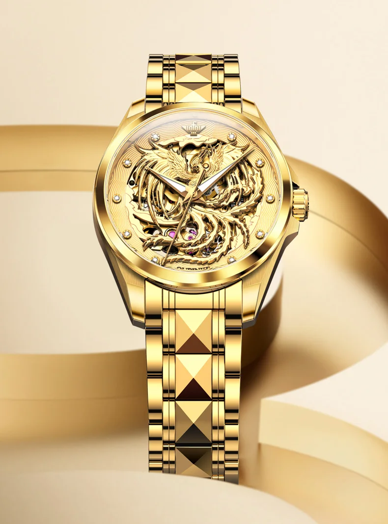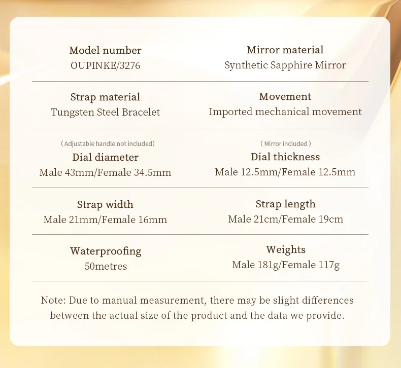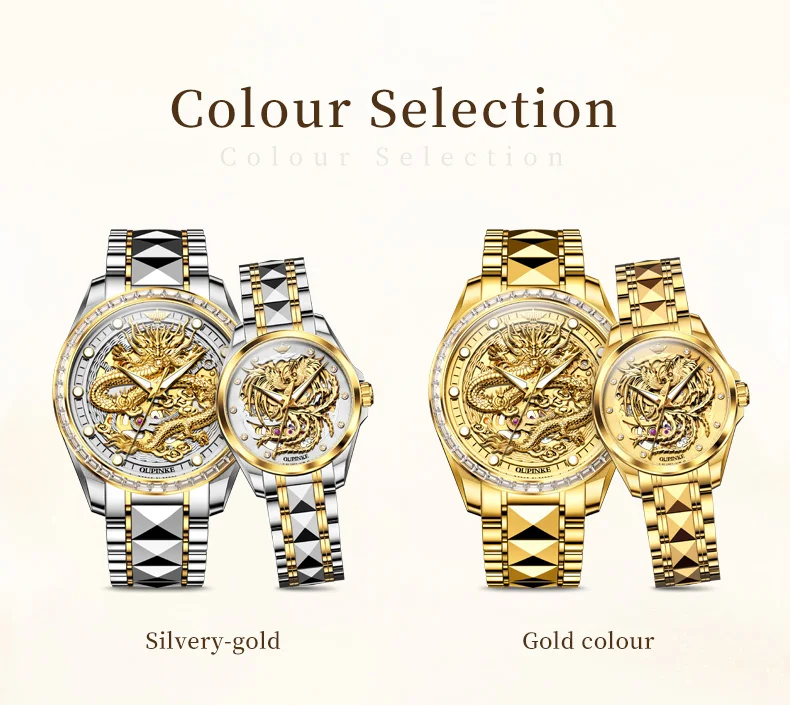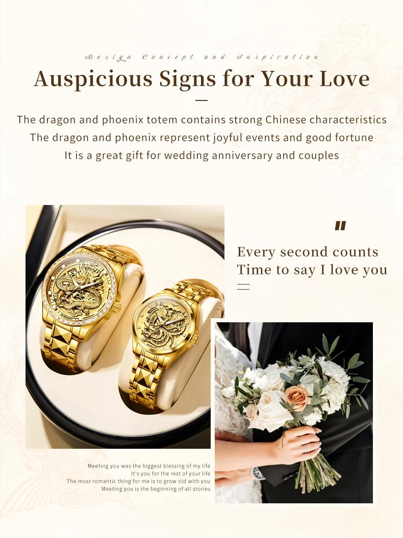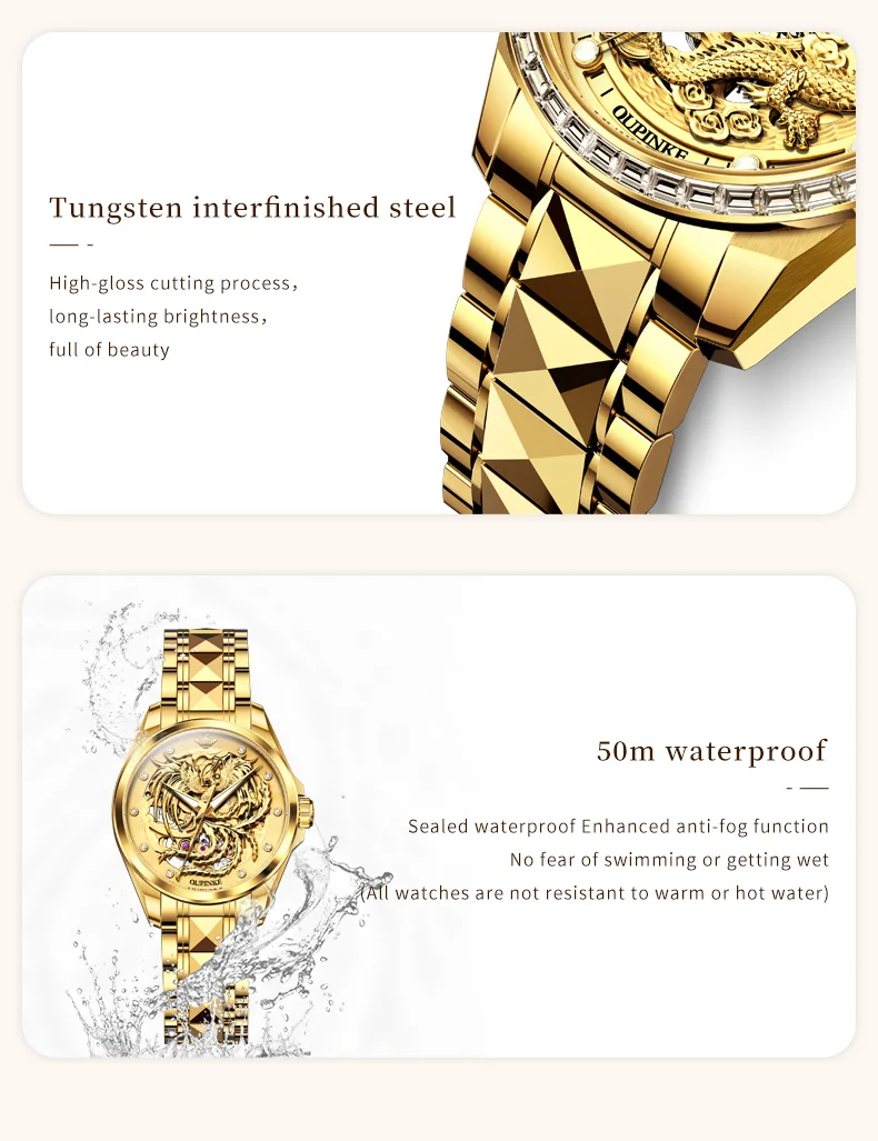 - > OUPINKE-impermeável relógio mecânico automático para casal, tungstênio tira de aço, movimento importado, dourado, luxo, original