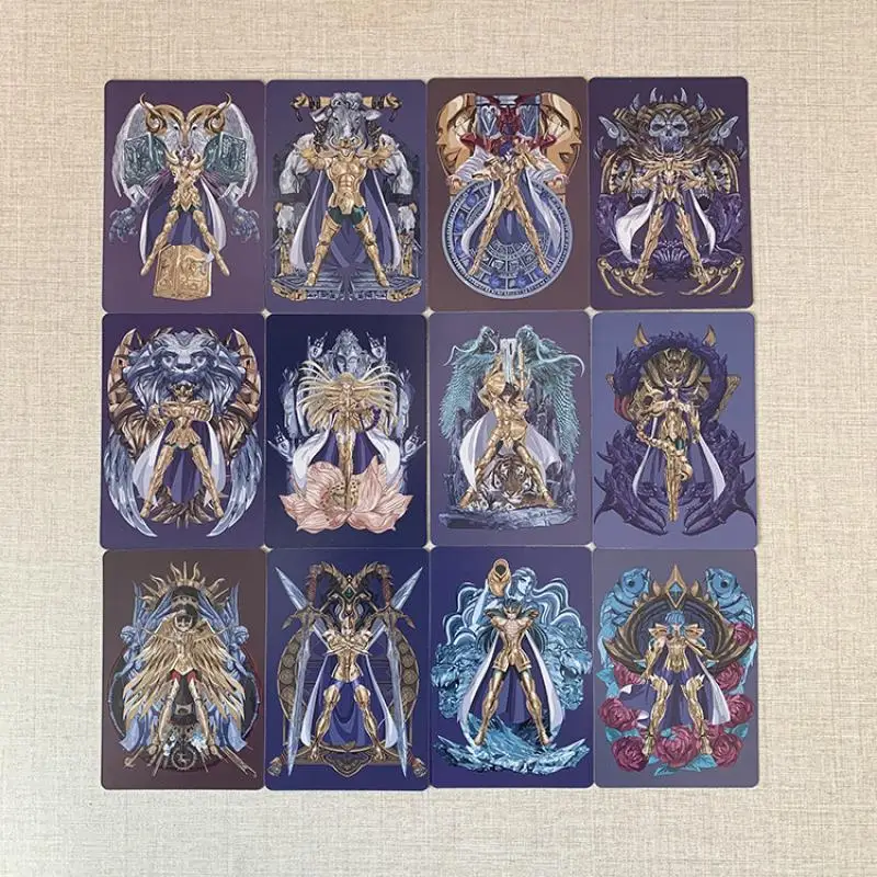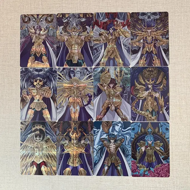 - > Ouro saint seiya cartão flash desenhado à mão série diy um conjunto de 12 folhas anime periférico jogo coleção cartão presentes para amigos