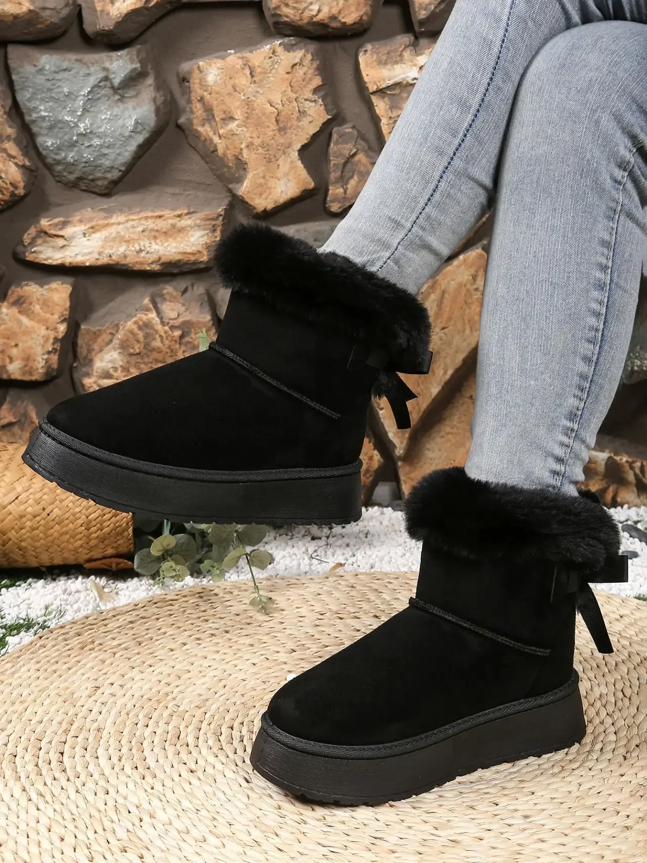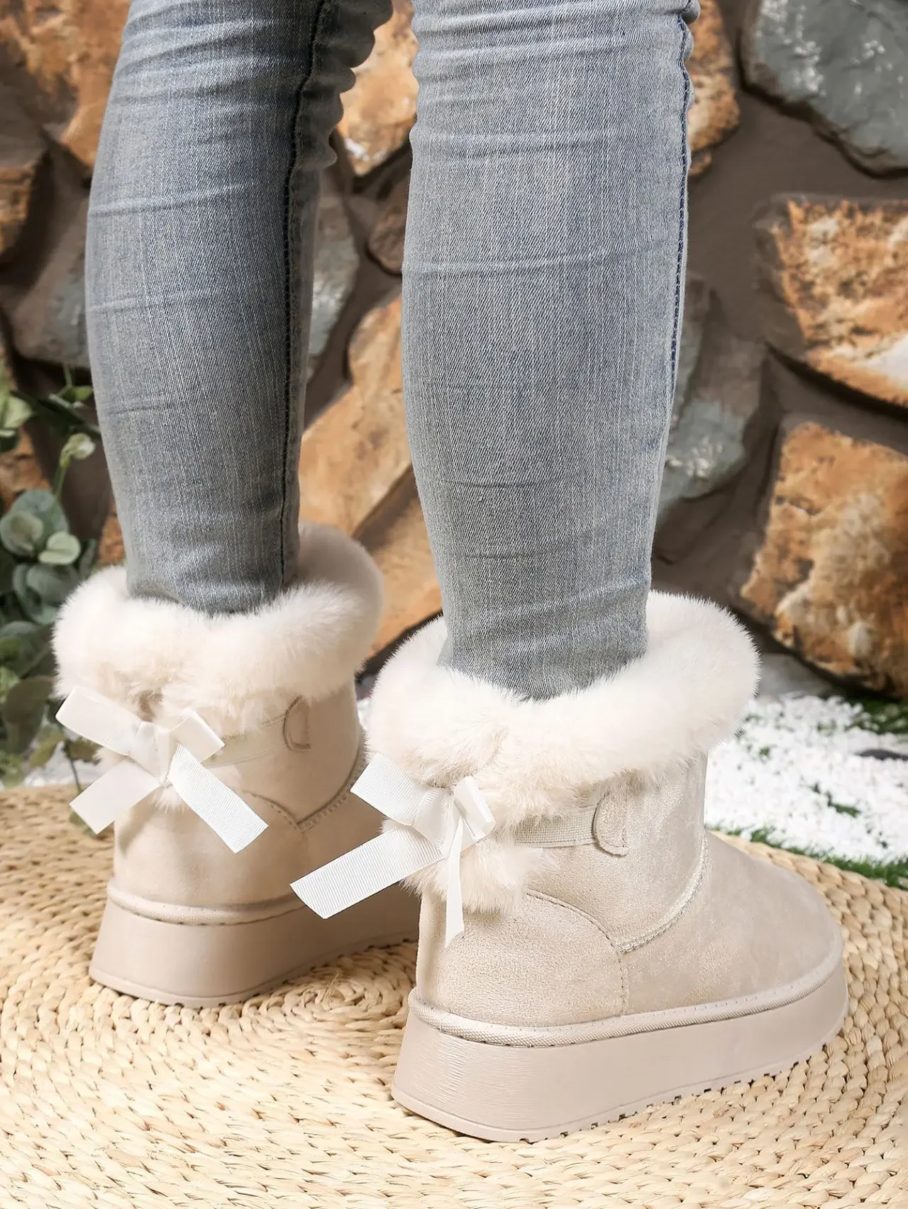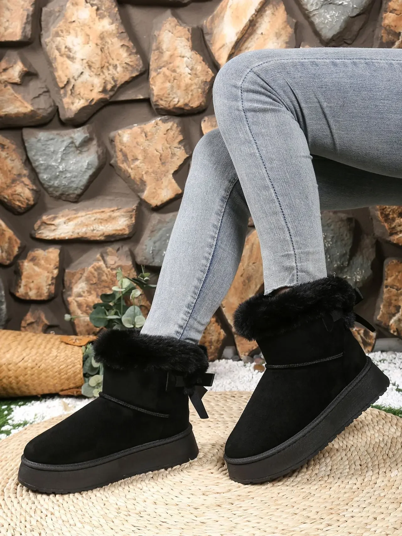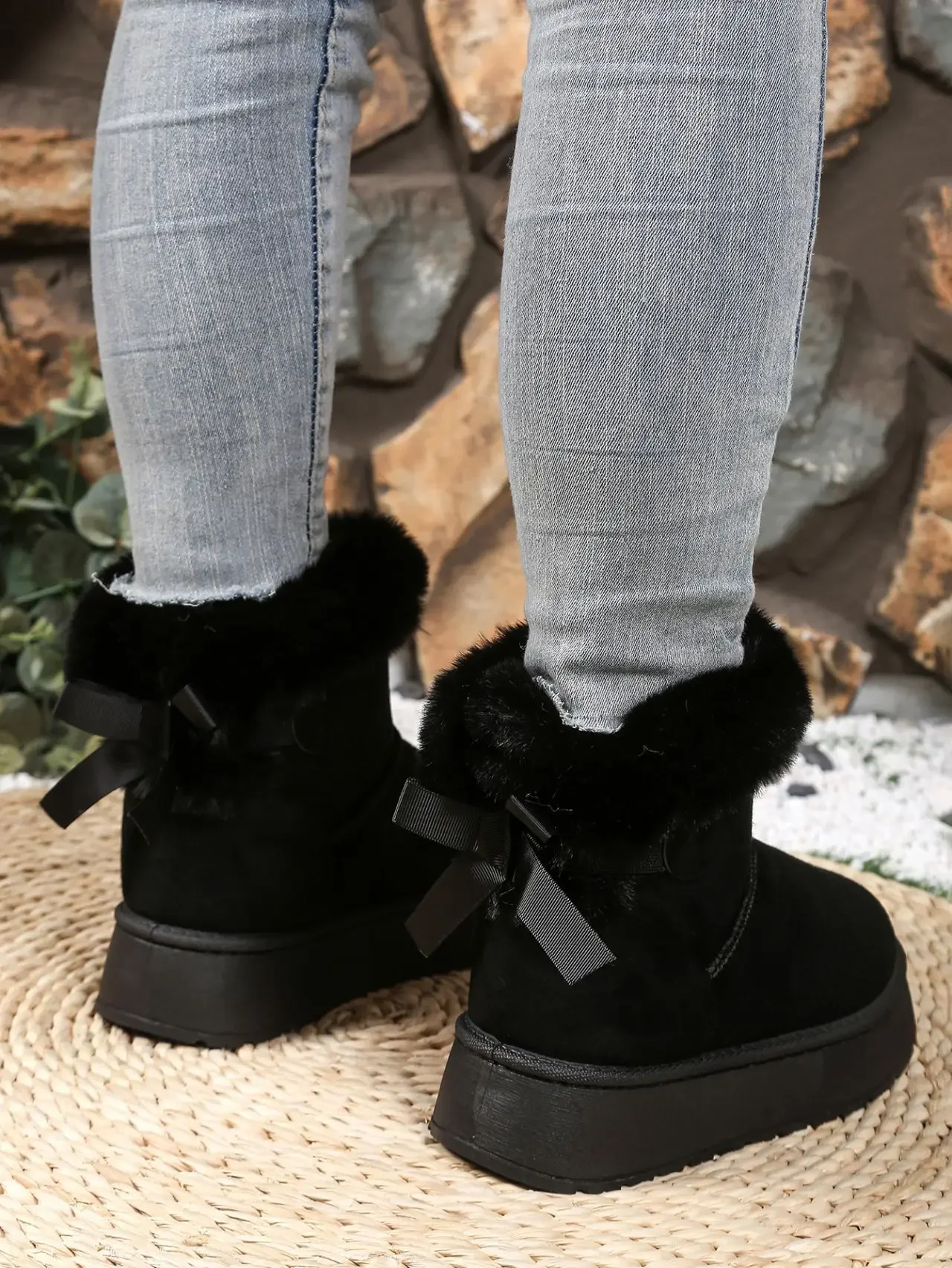 - > Outono inverno fundo grosso velo forrado botas de neve feminino borboleta nó pele guarnição quente botas curtas de borracha versão atualizada