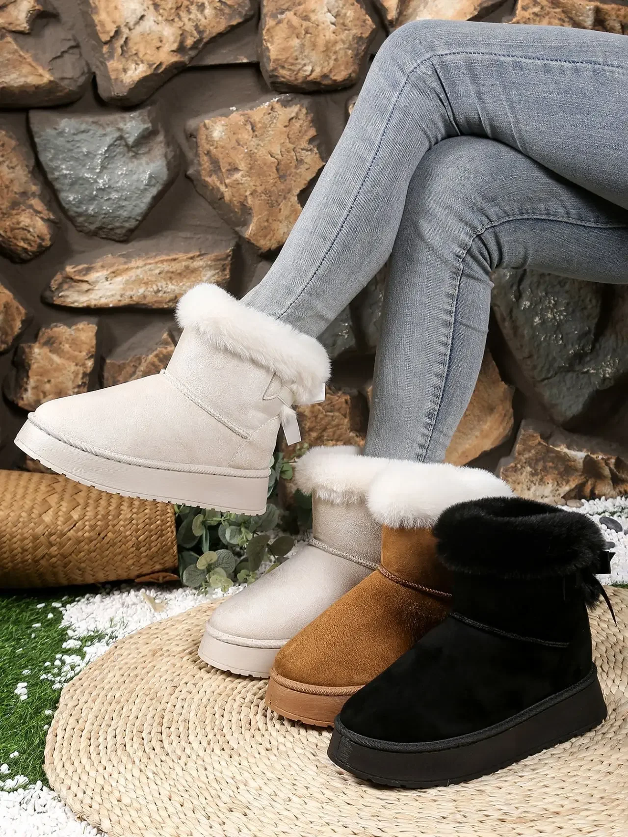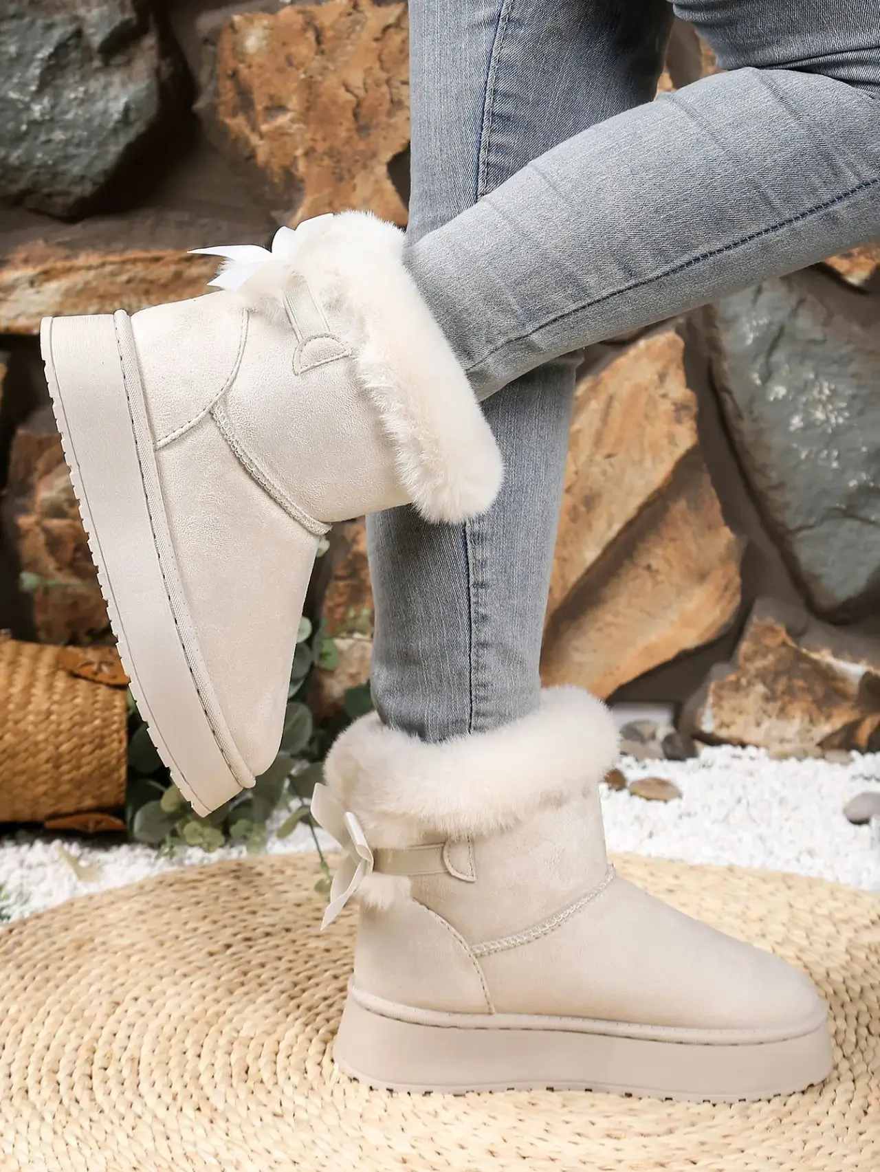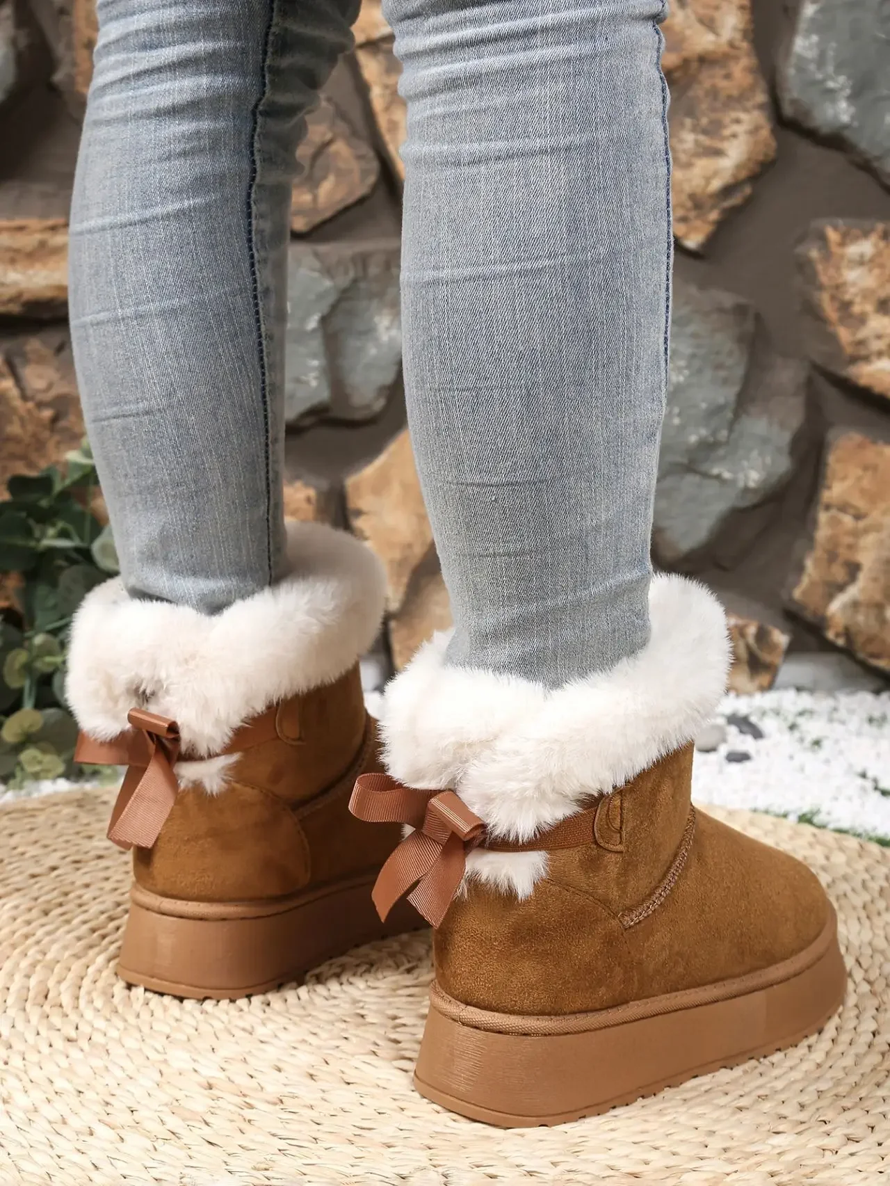 - > Outono inverno fundo grosso velo forrado botas de neve feminino borboleta nó pele guarnição quente botas curtas de borracha versão atualizada