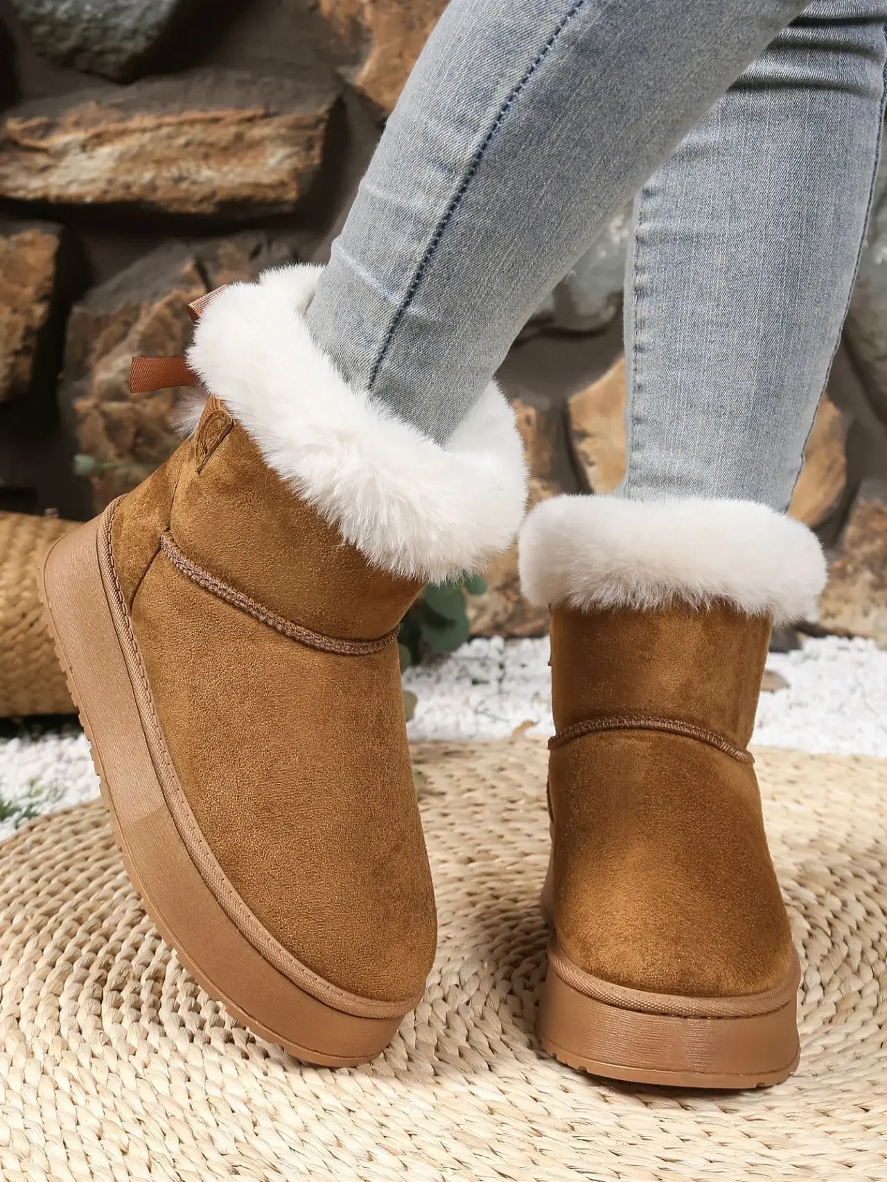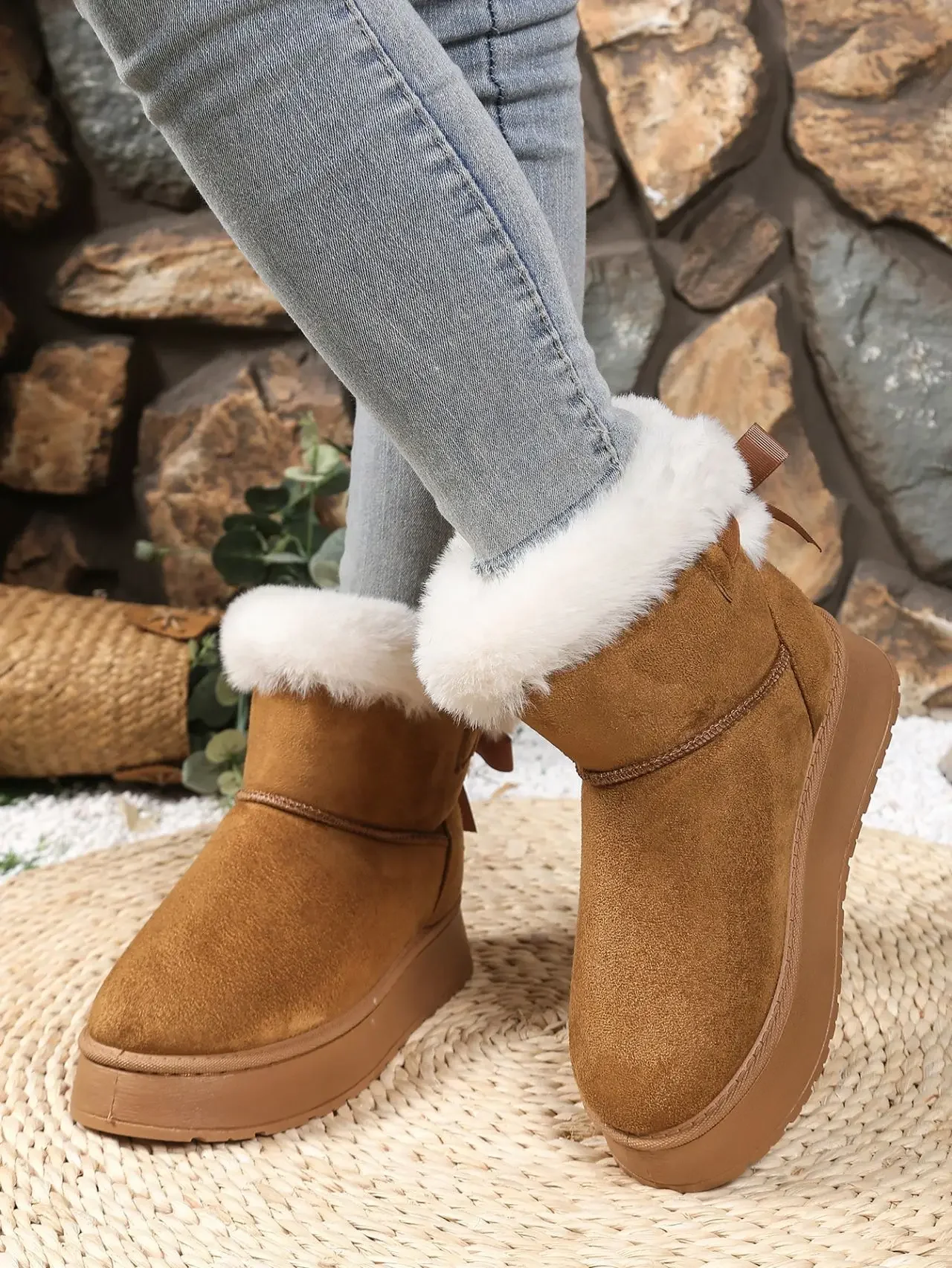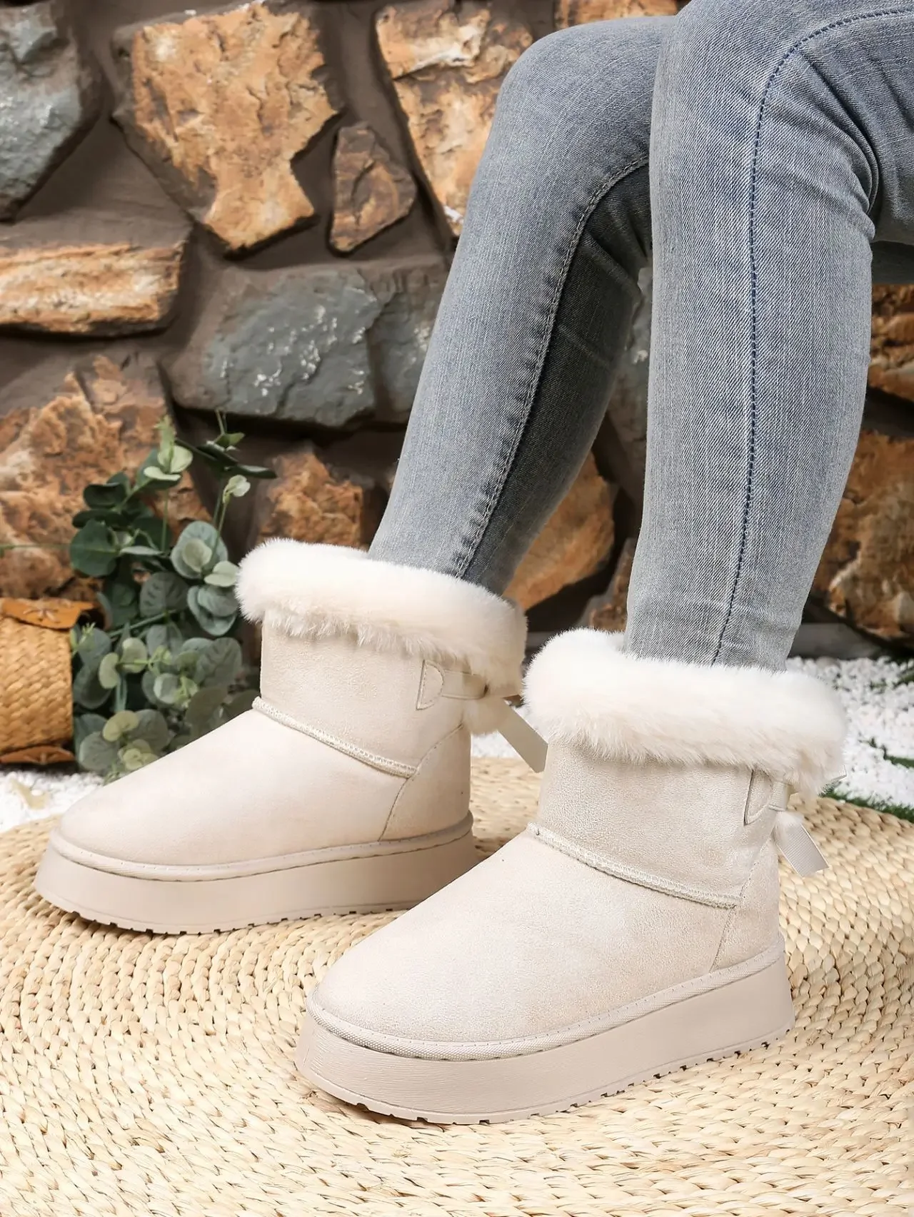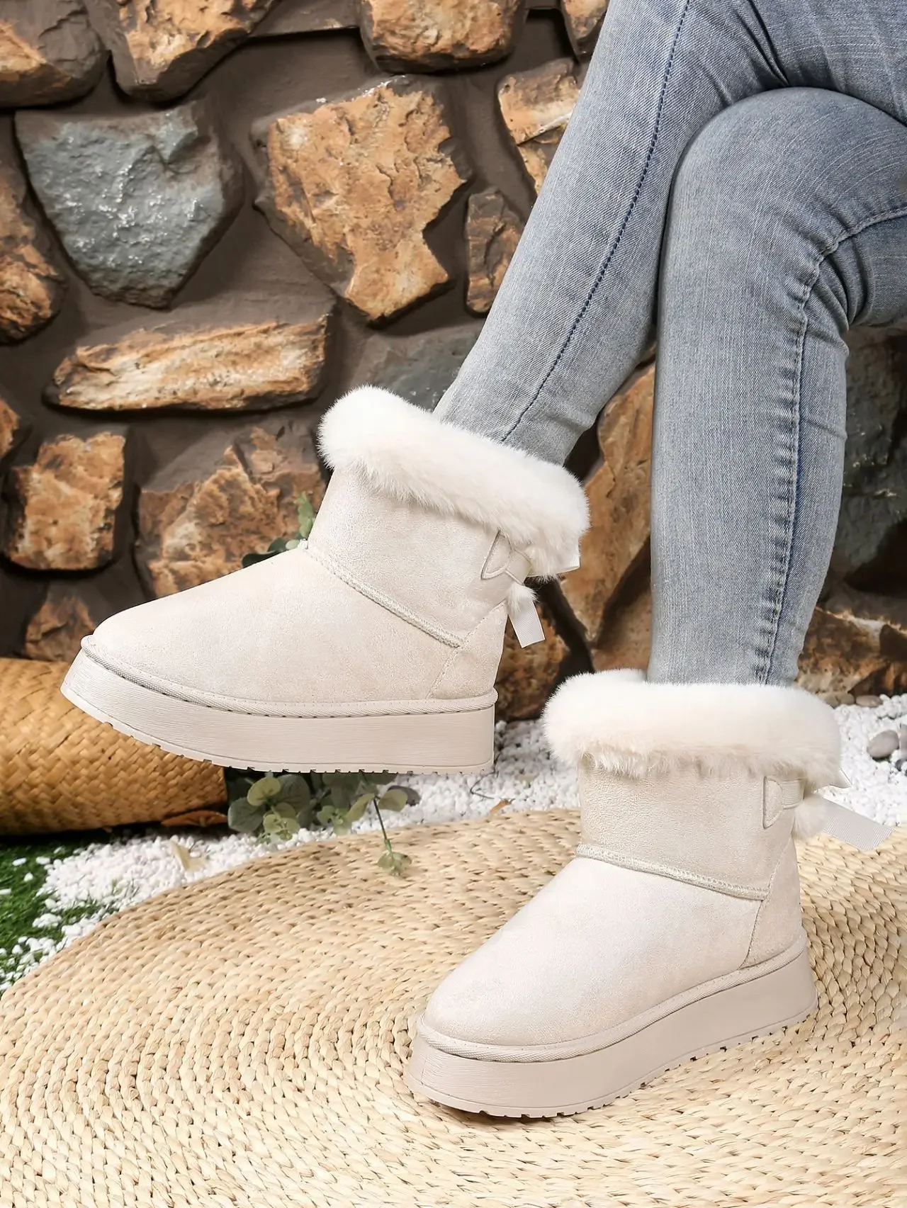 - > Outono inverno fundo grosso velo forrado botas de neve feminino borboleta nó pele guarnição quente botas curtas de borracha versão atualizada
