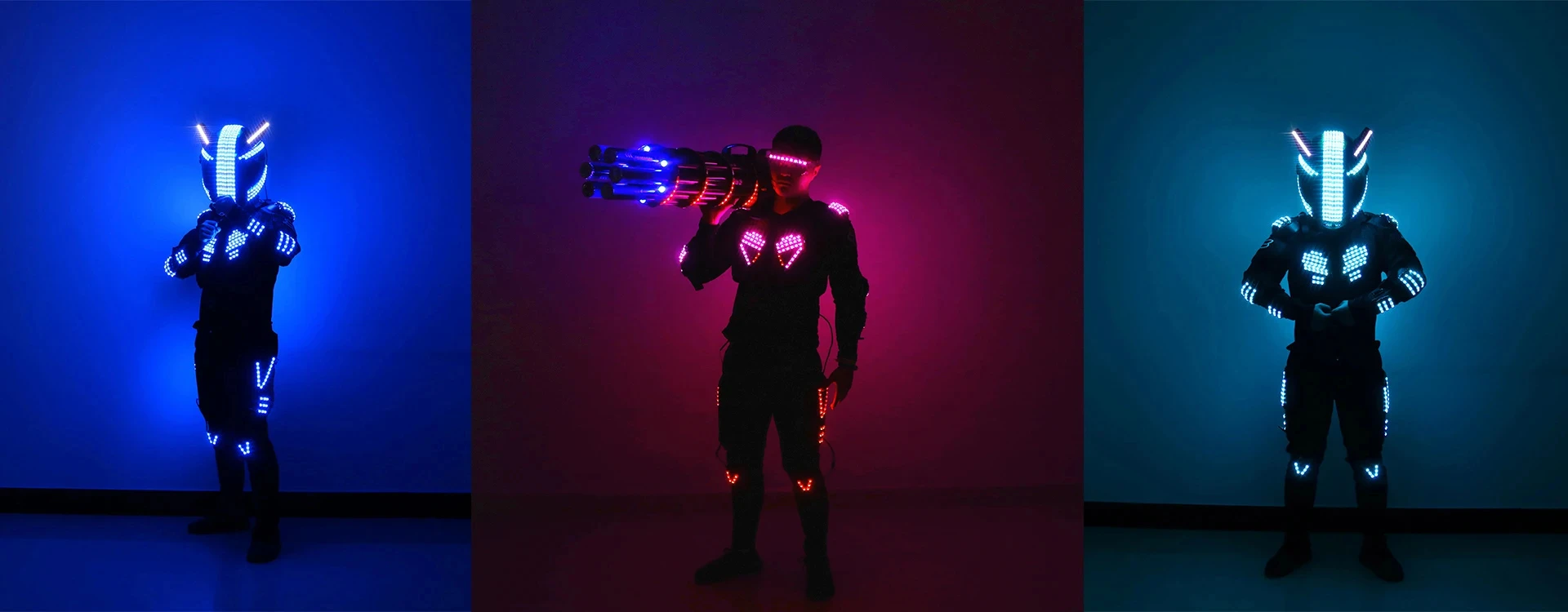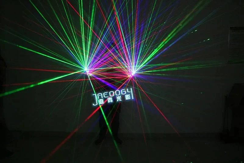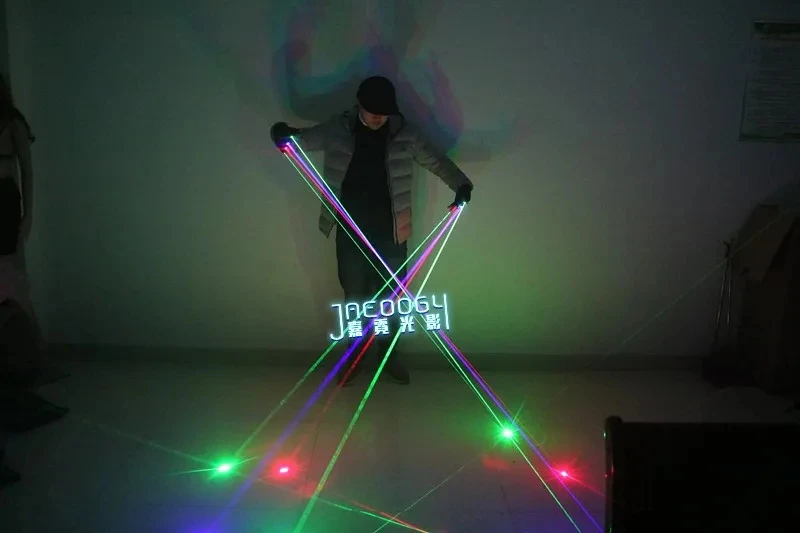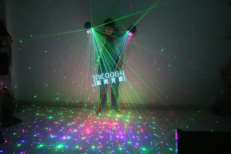 - > Palco DJ Party Dancing Laser Luvas, 2 em 1, Multi-linha RGB, 2 Verdes, 1 Vermelho, 1 Azul, LED Luminous Costumes Show, Alta Qualidade