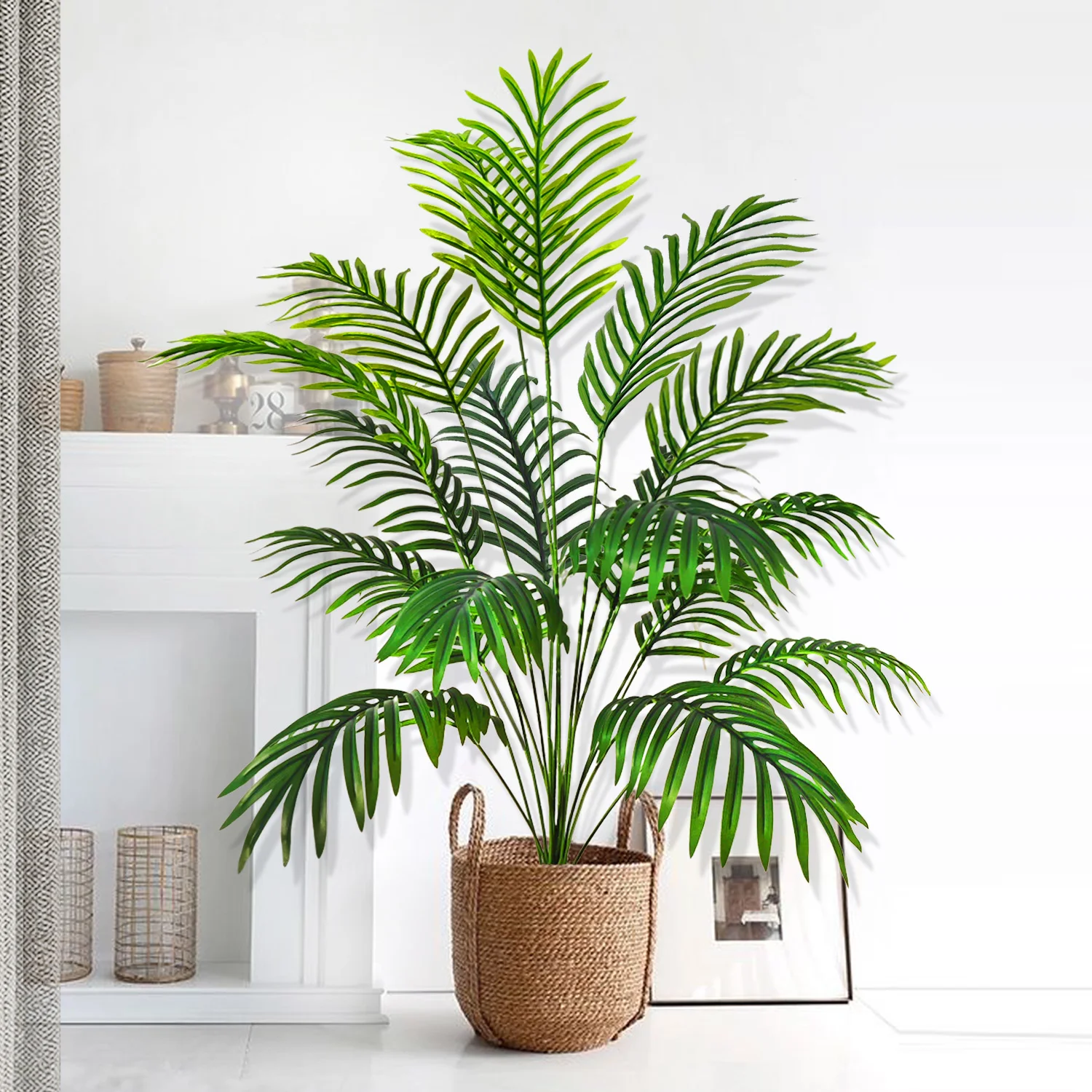 Palmeira artificial para decoração de jardim doméstico, planta falsa, plástico verde, ramos de folhas de palmeira, decoração tropical, 68-125cm, 50,2 pol