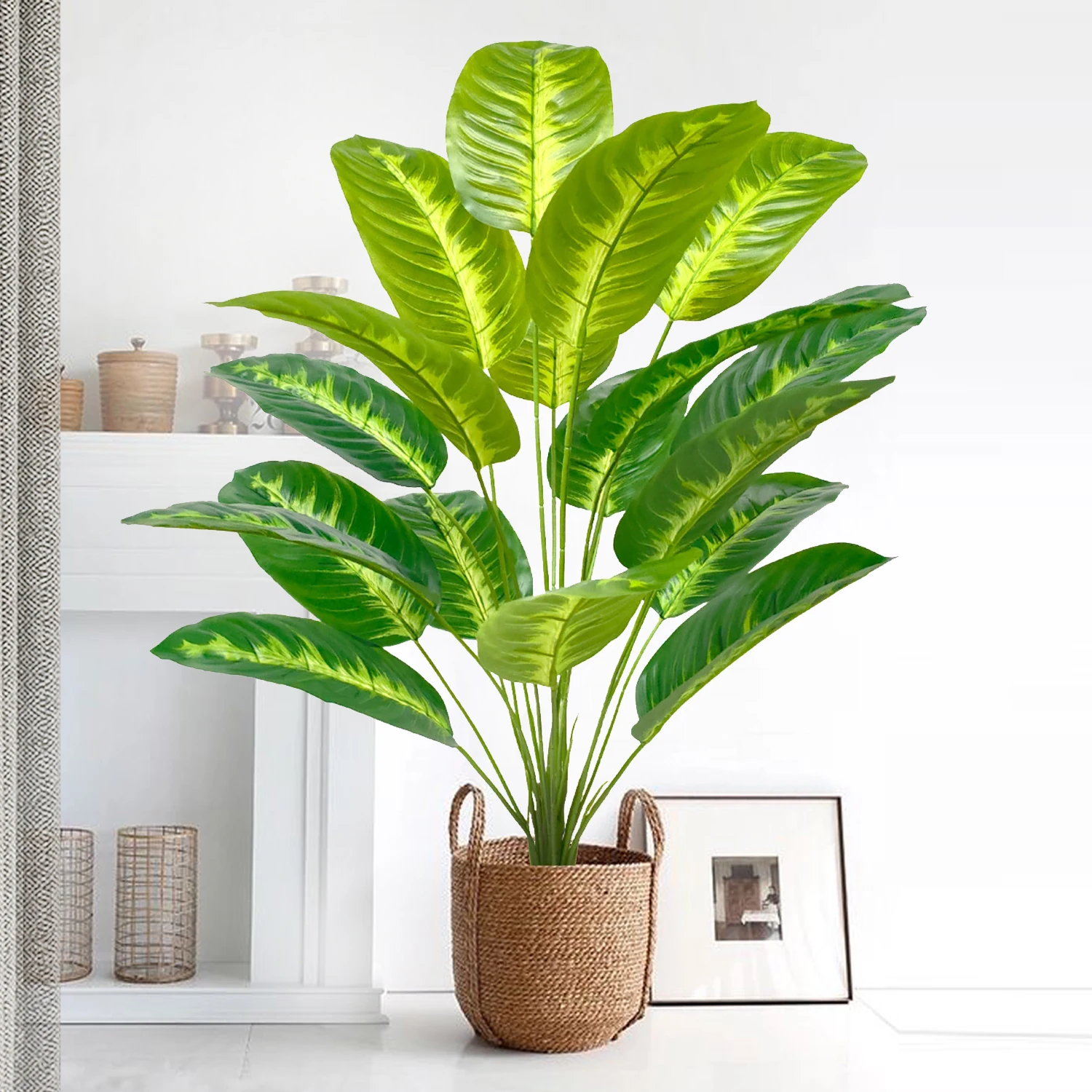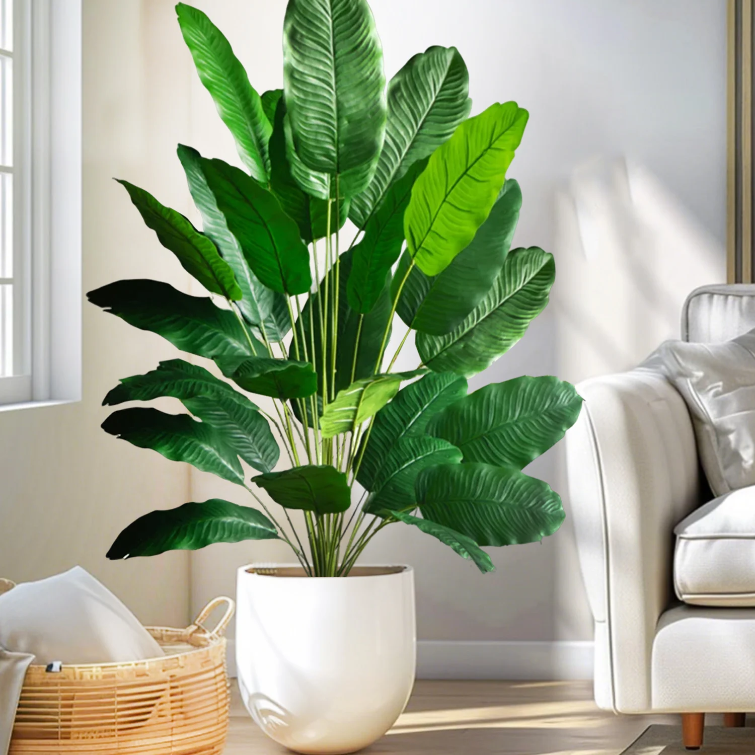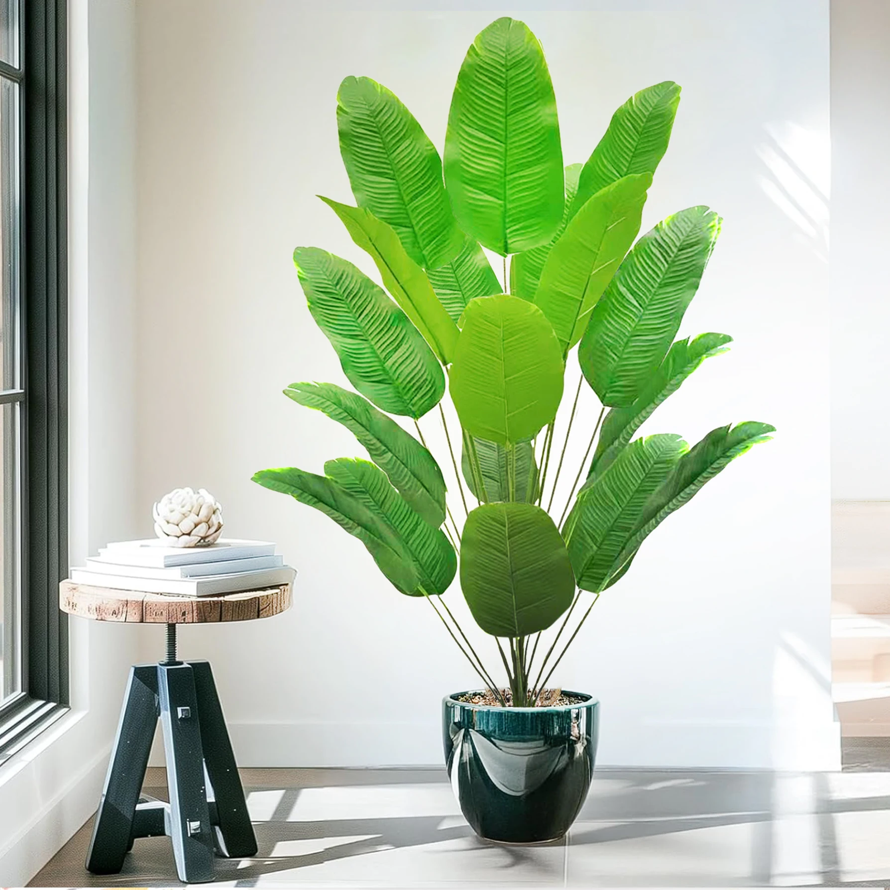 - > Palmeira tropical artificial 60-90-120cm(47,2 pol.) folhas de planta de banana falsa toque real planta de plástico strelitzia para jardim doméstico