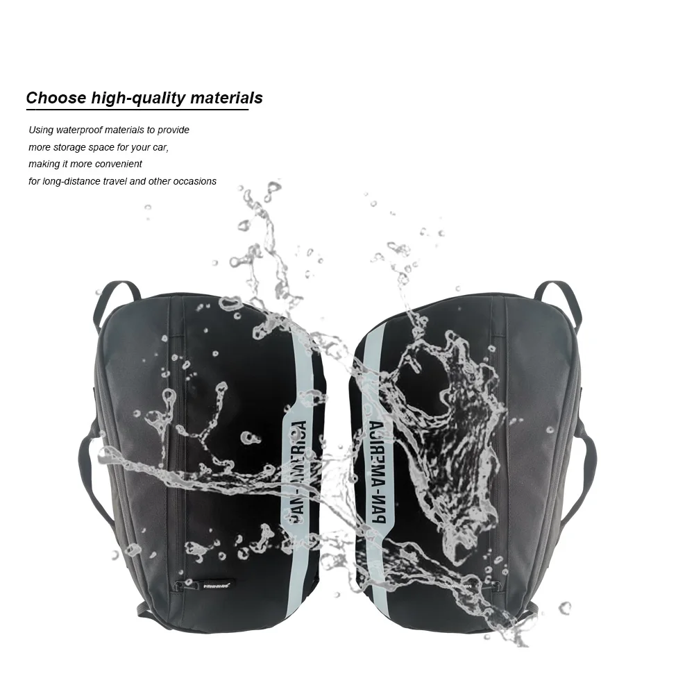 O material do tecido de fibra é à prova d'água e o design do forro interno é altamente compatível com a caixa do carro.Além disso, vem com uma corda de mão, que pode ser usada como bolsa mensageiro de alta capacidade.