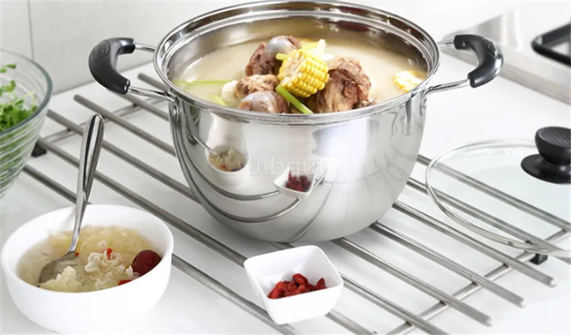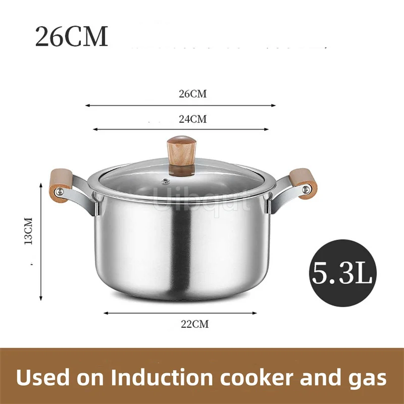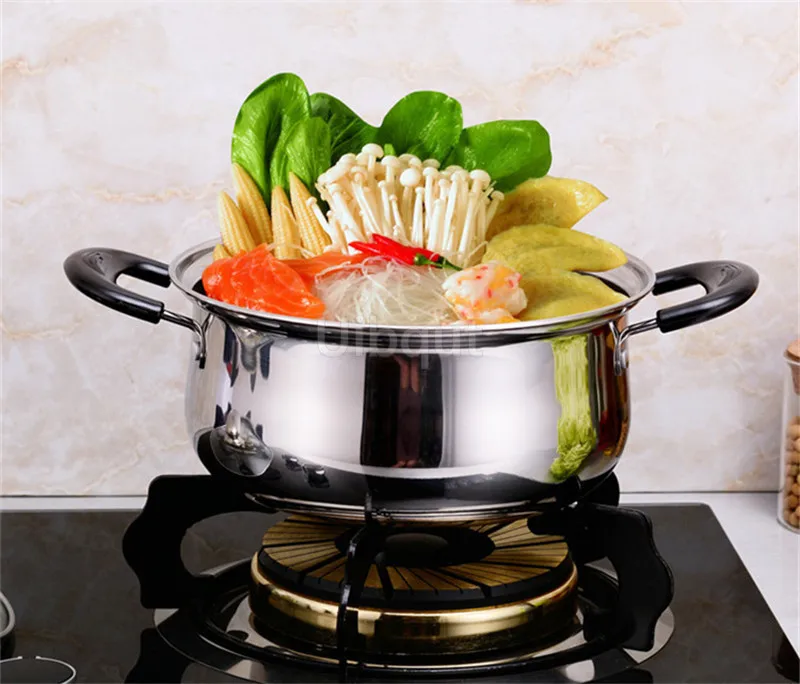 Panela de aço inoxidável com fundo duplo, panela de sopa não magnética, panelas multiuso, panela antiaderente, fogão a gás usado, panela quente