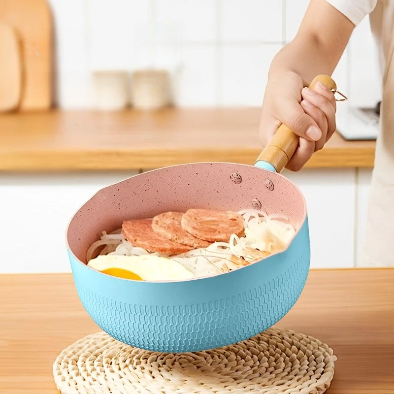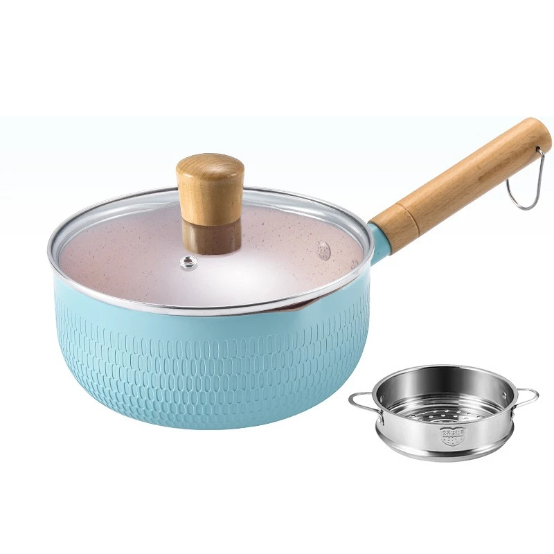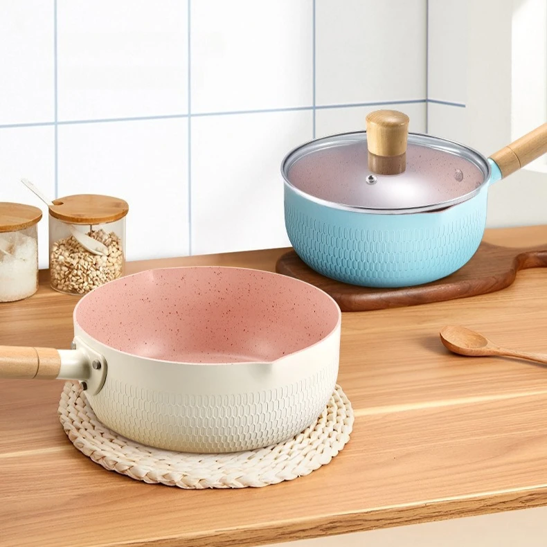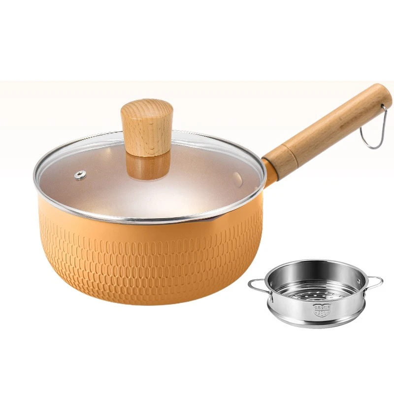 Panela de molho antiaderente de cozinha com tampa de vidro, aquecedor de manteiga, panelas compatíveis com indução, panela saudável com alça de madeira