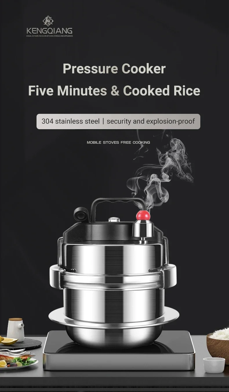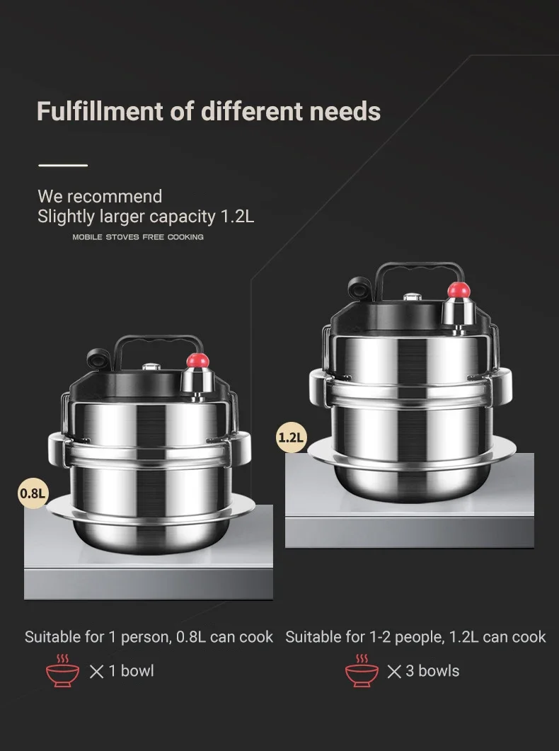 Panela de pressão pequena para acampamento ao ar livre, 0,8-2l, aço inoxidável 304, panela de arroz portátil para cozinha, ferramenta de cozinha, panela de pressão