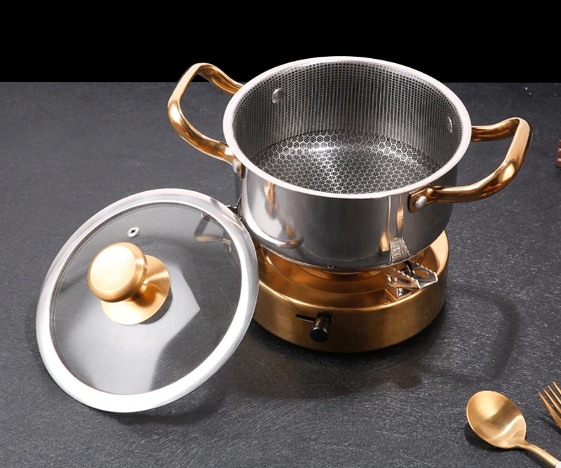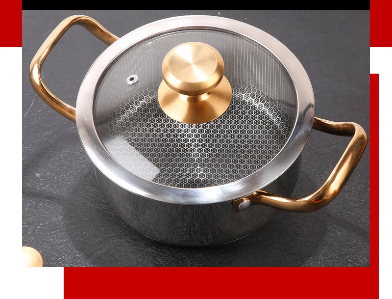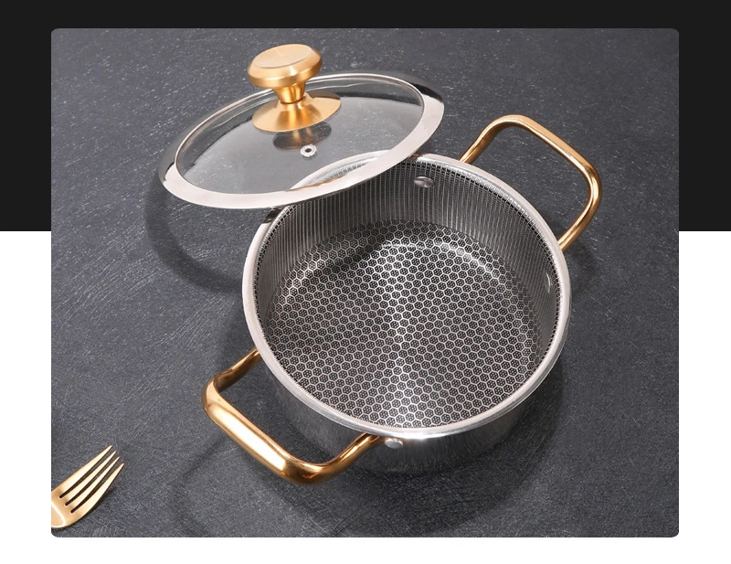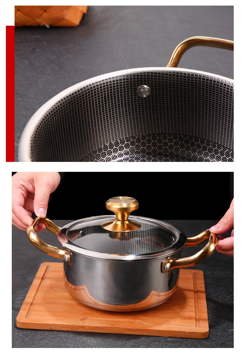 Panela de sopa de aço inoxidável com tampa favo de mel antiaderente frigideira wok casa panela quente fogão de indução fogão a gás panelas de cozinha