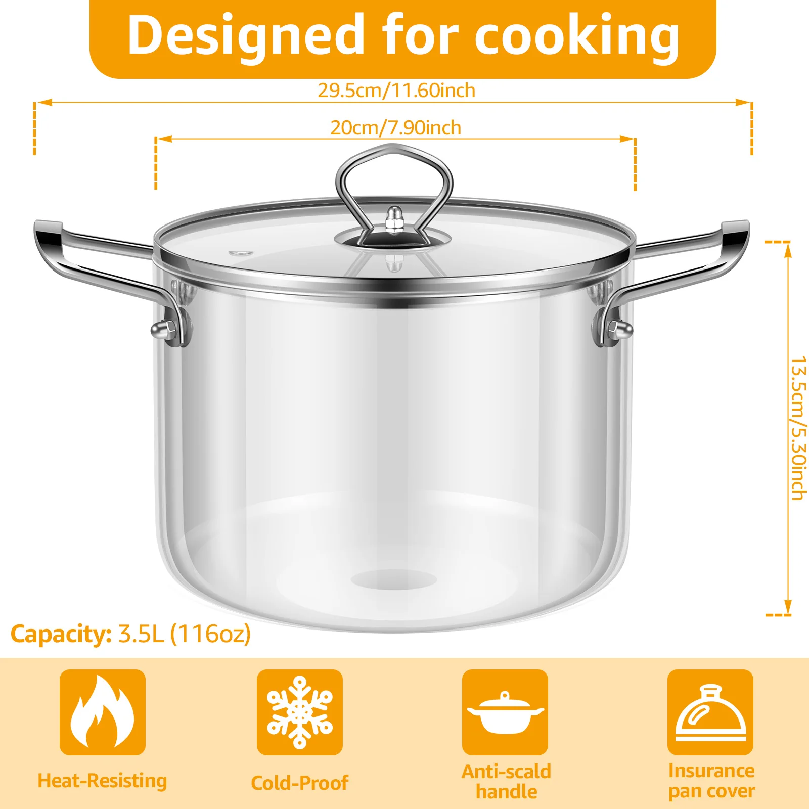 Panela de vidro 2,5l/3,5l com tampa para fogão panela transparente de alto borosilicato para cozinhar chá, sopa, ferramentas de cozinha