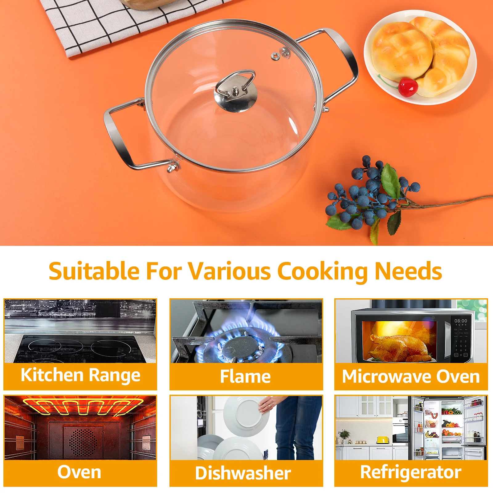 Glass Lid Design: The included glass lid helps seal in flavor and moisture, ensuring your dishes are cooked to perfection every time. The overall transparent design also allows you to easily monitor your food without opening the lid, saving you time and energy.