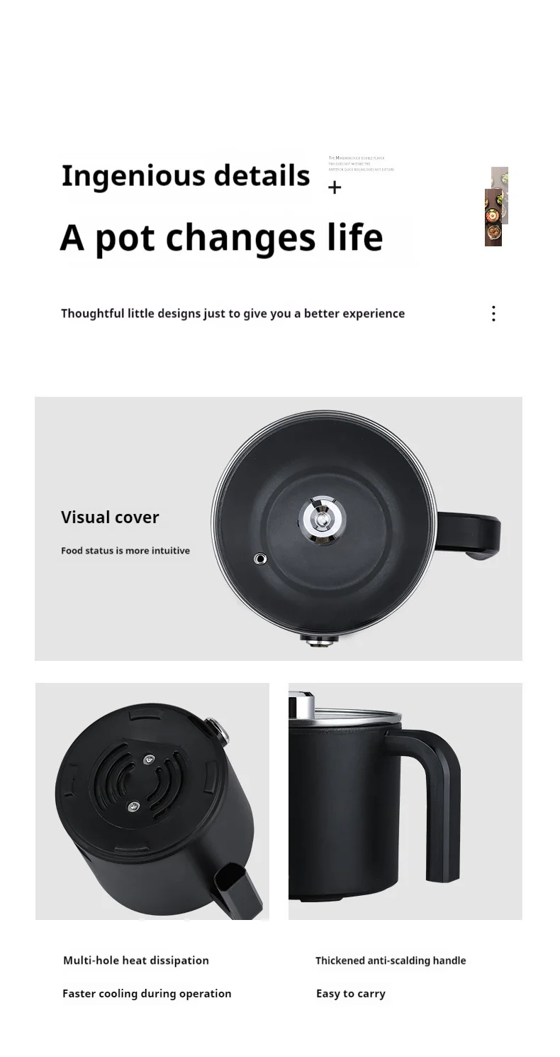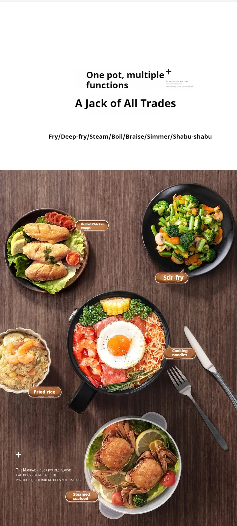 【 Seu companheiro de viagem】 O fogão elétrico pode substituir uma variedade de utensílios de cozinha comuns e transformar sua culinária durante a semana, tornando o preparo das refeições descomplicado.Além disso, é perfeitamente adequado para diversas ocasiões.Leve-o para o seu escritório durante a semana para preparar o seu almoço e uma cena rapidamente.Para quem gosta de viajar e acampar pode usar este quente elétrico para cozinhar com ingredientes locais ou preparar uma refeição adequada à sua dieta.
