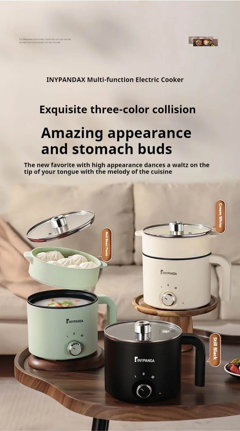 Panela elétrica antiaderente de 1,8l, panela multifuncional, panela de arroz cozido no vapor única/dupla com função de fritura elétrica