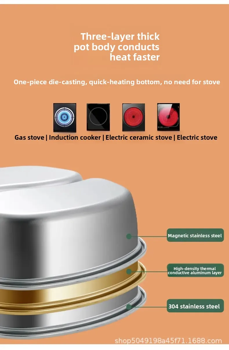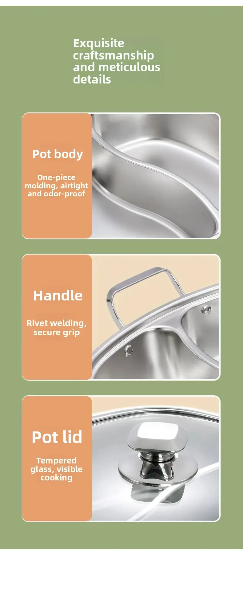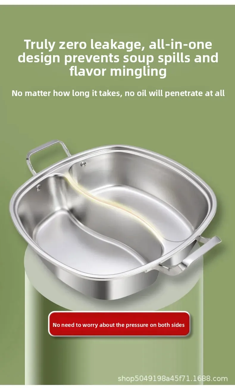 • Material de aço inoxidável:Fabricada em aço inoxidável 304 de alta qualidade, esta panela Yuanyang garante durabilidade e longevidade, perfeita para uso doméstico e comercial.