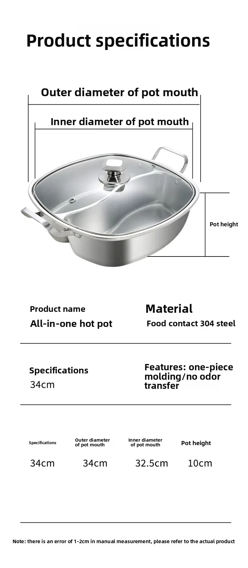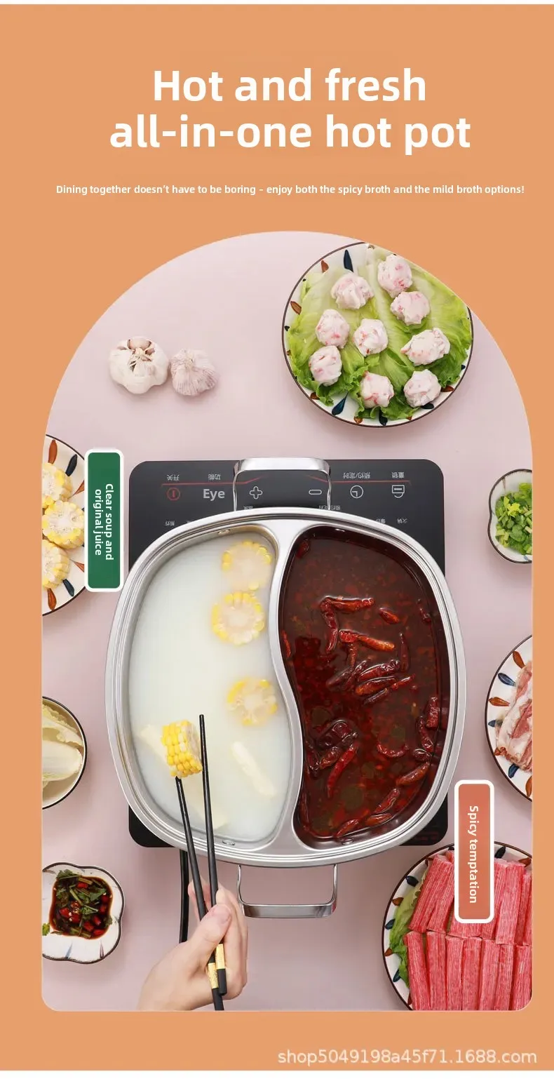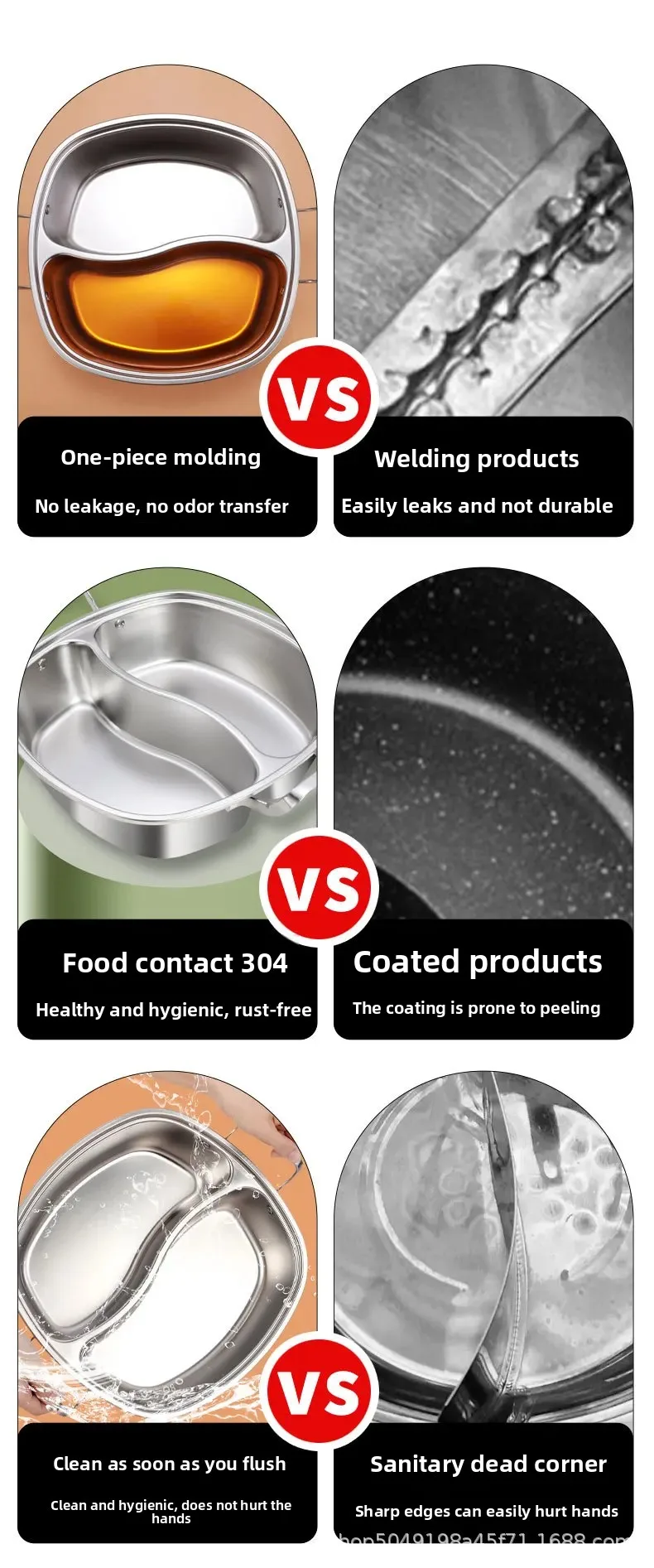 Panela elétrica quadrada integrada de aço inoxidável para uso doméstico e comercial especializada panela quente para panela quente estilo chinês