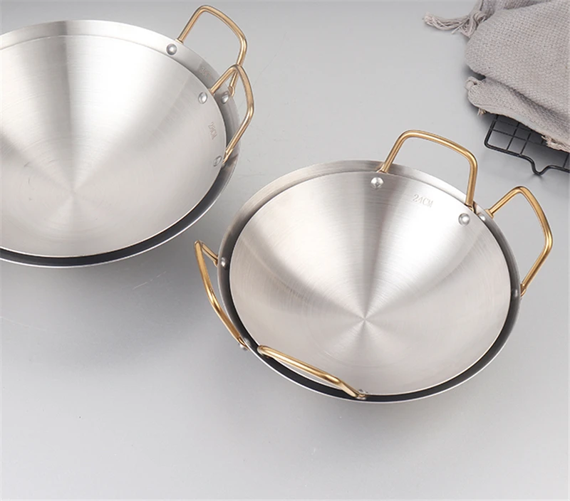 Panela Seca De Aço Inoxidável Espessada, Panela Antiaderente Doméstica, Fornalha De Álcool De Orelha Dourada, Hotpot Pequeno