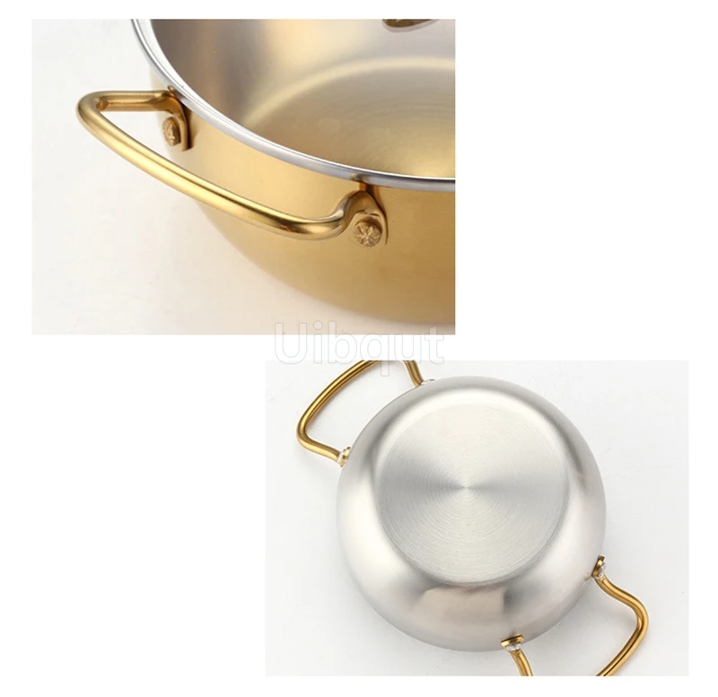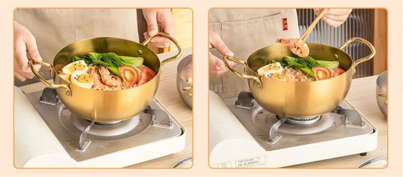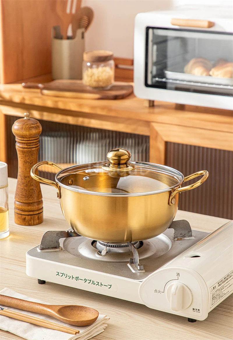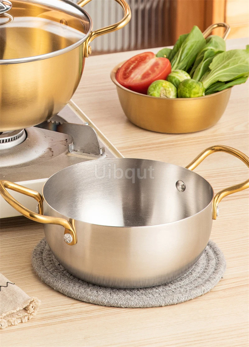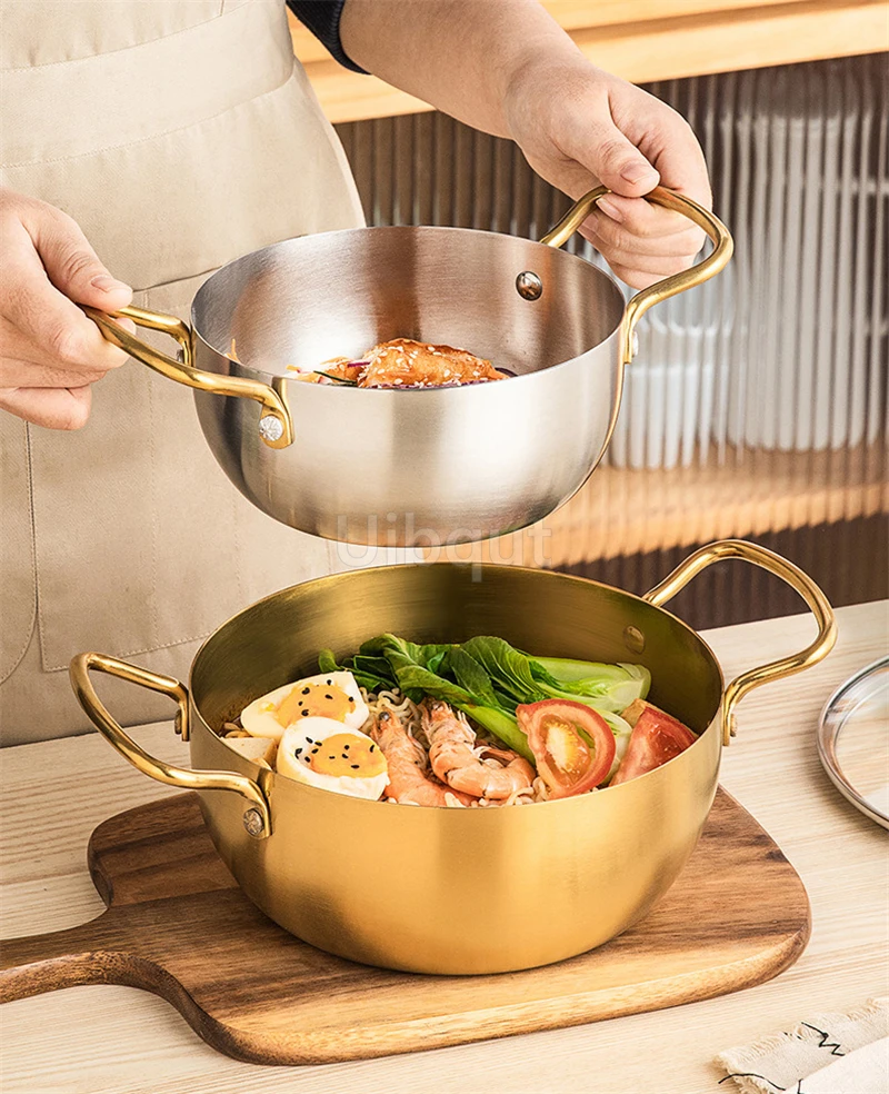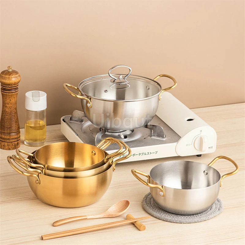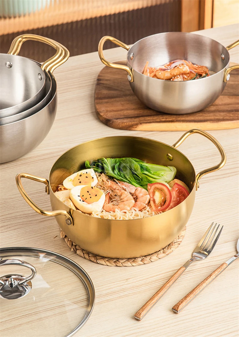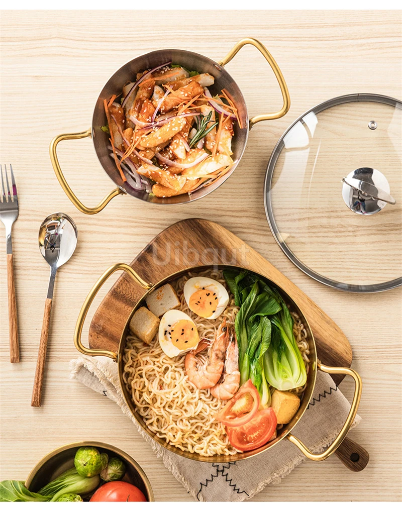 Panela seca de frutos do mar coberta, panela e panelas de aço inoxidável, panela de macarrão lamian coreano, fundo plano, panela de sopa de orelha dupla