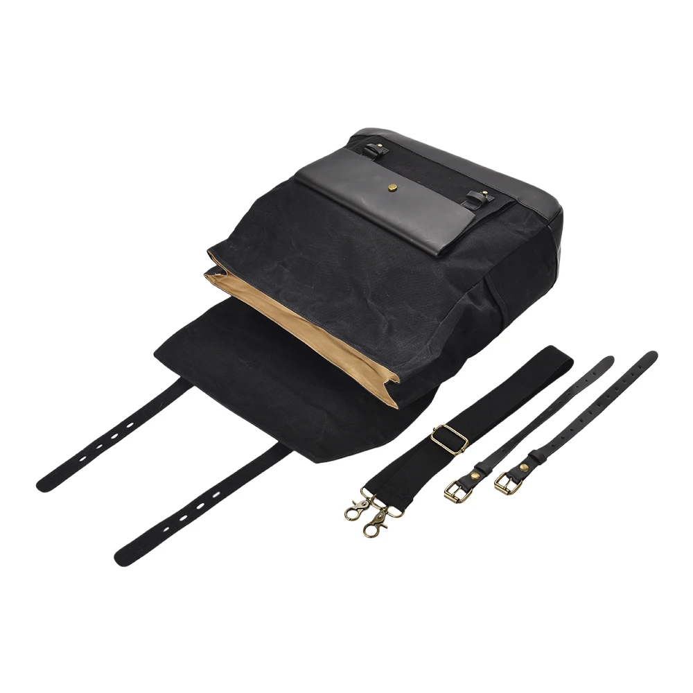 Tecido: Lona de cera de óleo impermeável combinada com couro bovino de camada superior