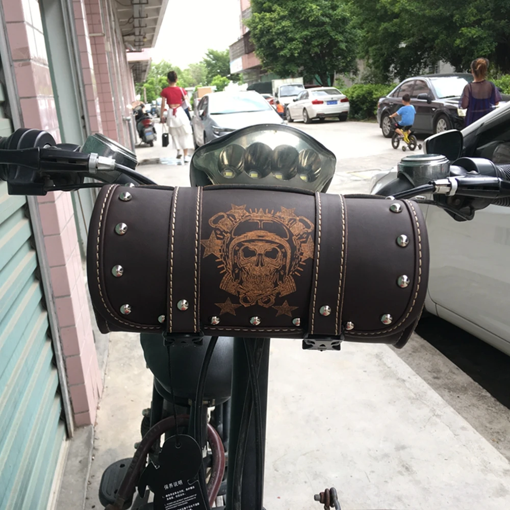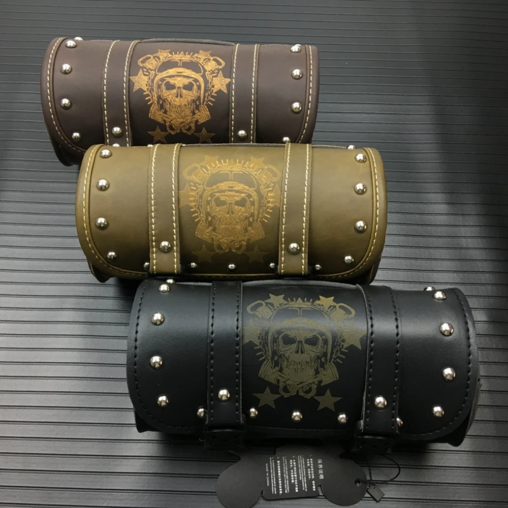 Vintage preto marrom couro do plutônio da motocicleta ferramenta lateral saco de cauda bagagem para harley universal saco sela da motocicleta
