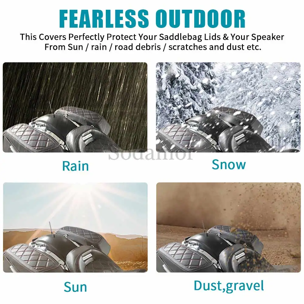 1. esta capa protege perfeitamente as tampas do alforje e do alto-falante do sol/chuva/detritos da estrada/arranhões e poeira, etc.